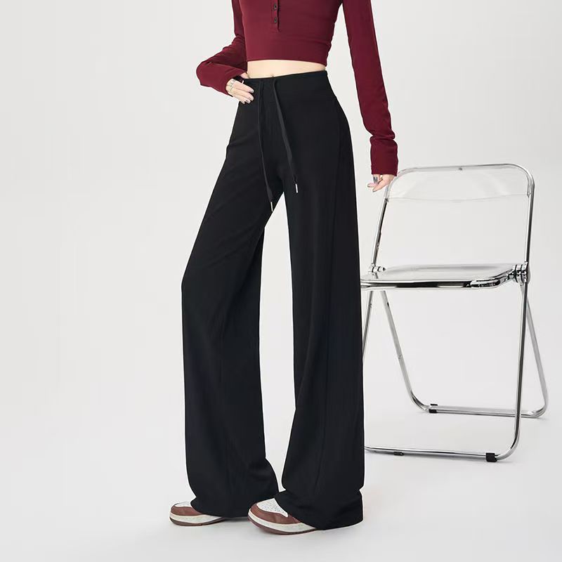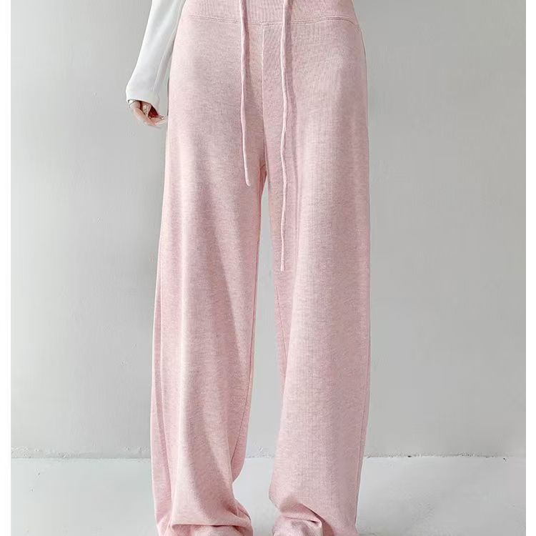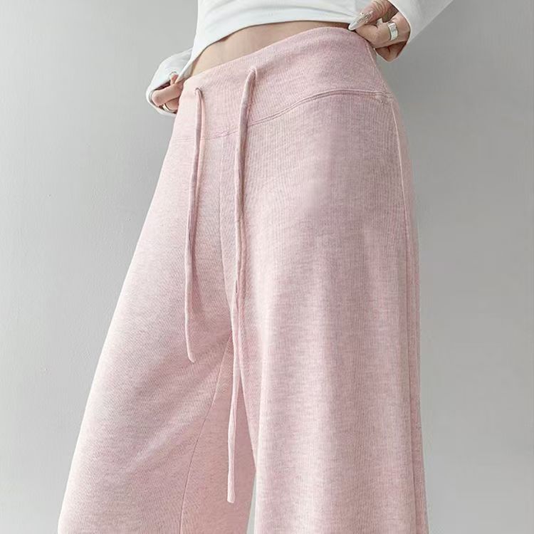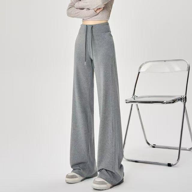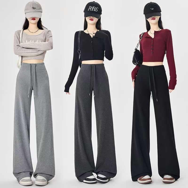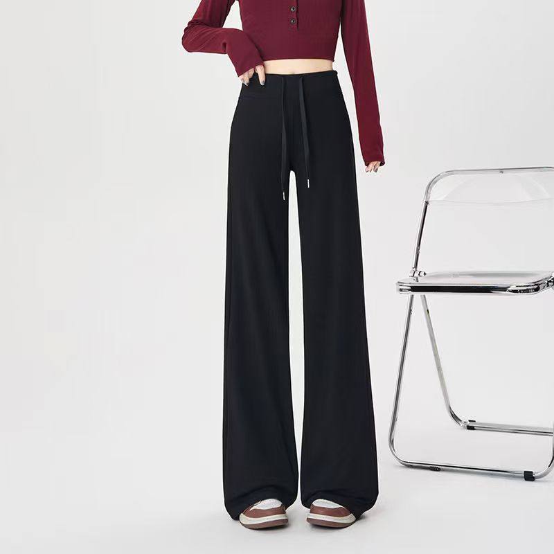 YF6141-(4色入内)秋冬时尚运动休闲抽绳收腹直筒坠地感纯色阔腿卫衣裤
