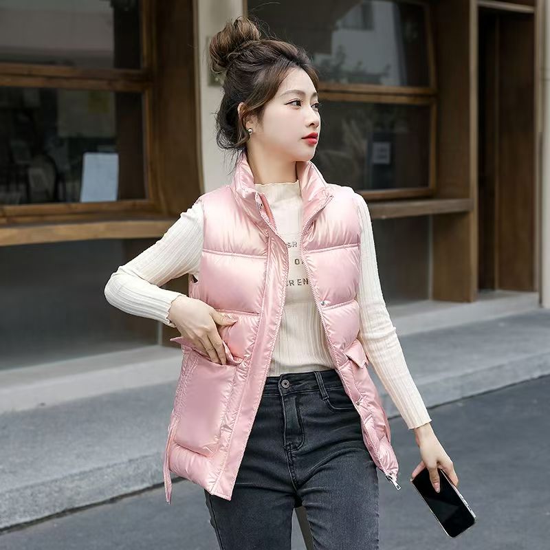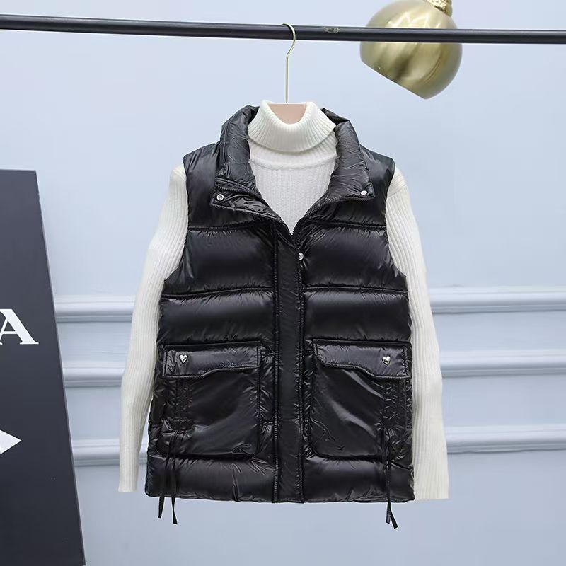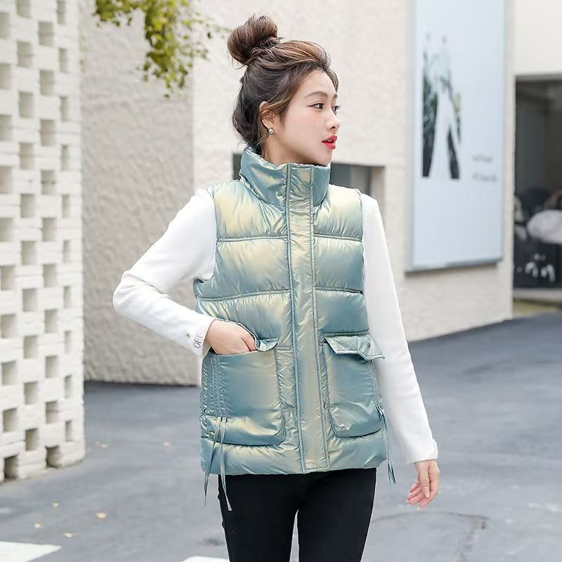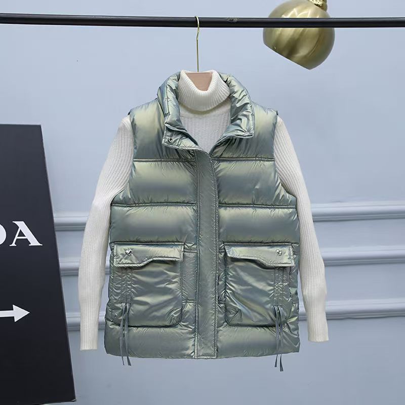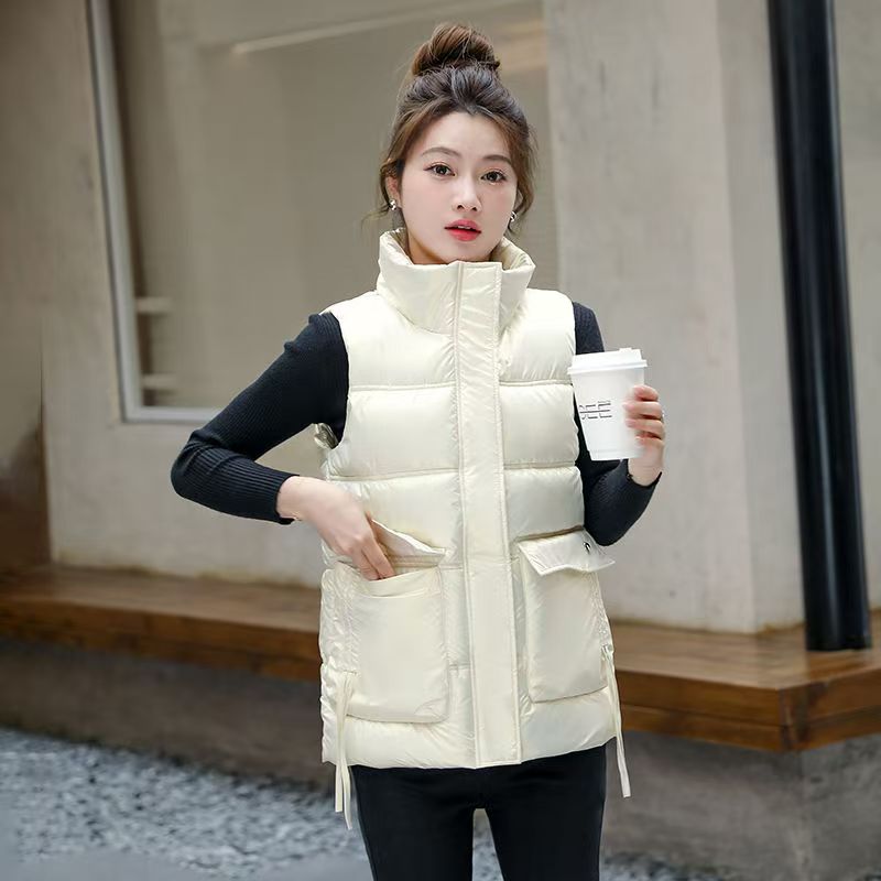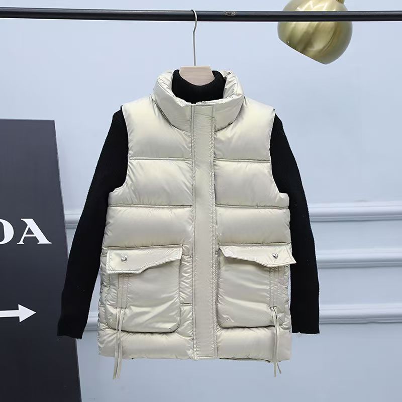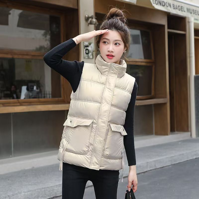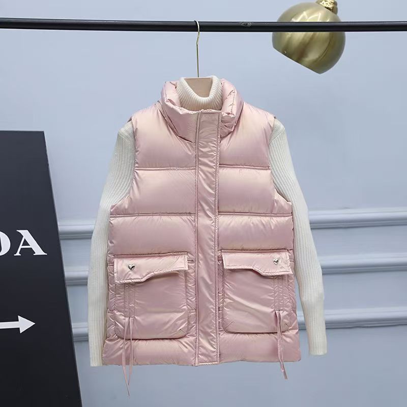 YF6144-(5色入内)秋冬新款宽松大码坎肩双口袋抽绳工装加厚柔软质地羽绒背心