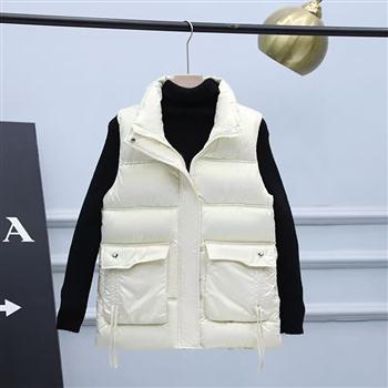 YF6144-(5色入内)秋冬新款宽松大码坎肩双口袋抽绳工装加厚柔软质地羽绒背心