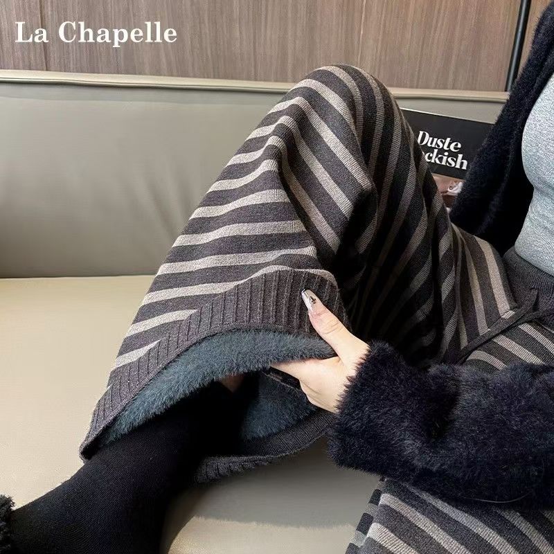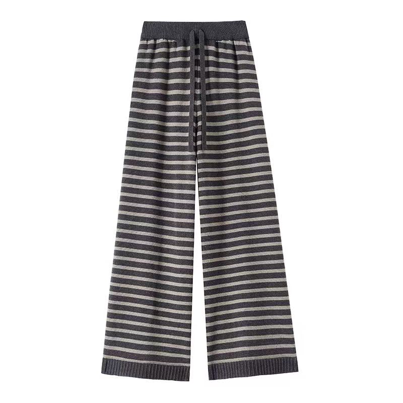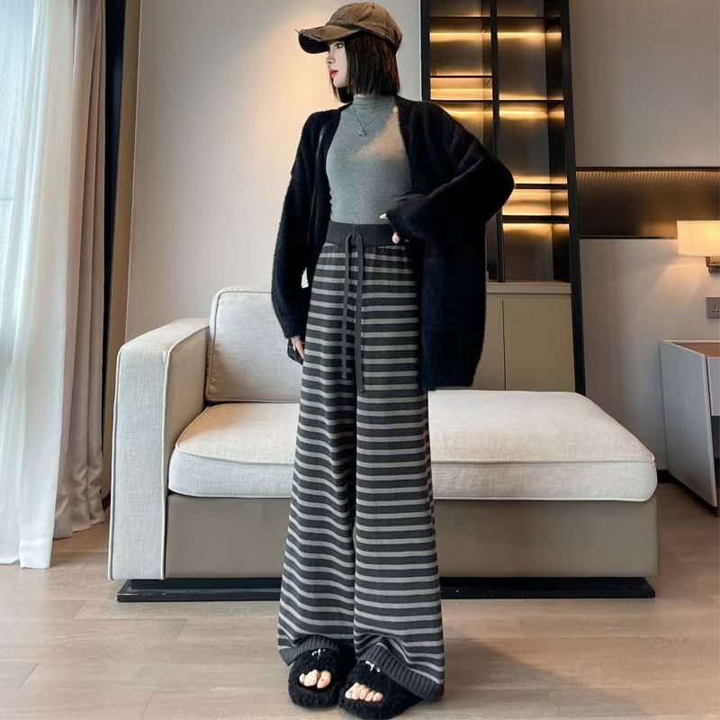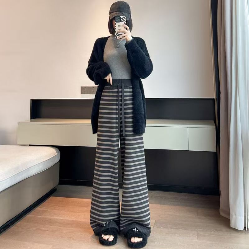 YF6164-图片色斑马纹松紧腰直筒坠地感加厚保暖针织阔腿休闲裤