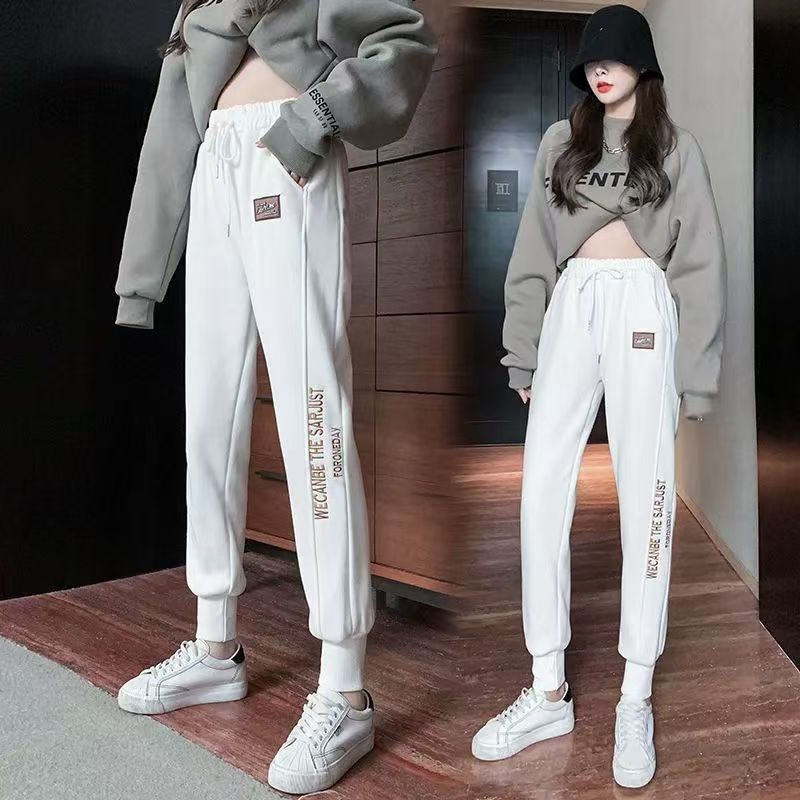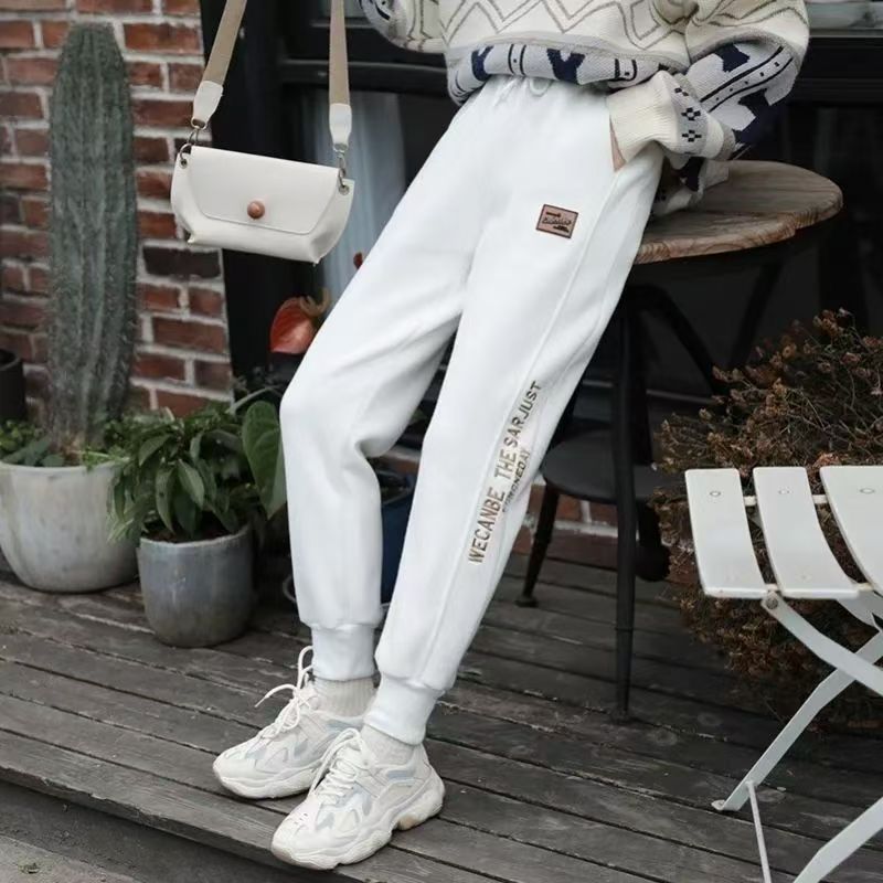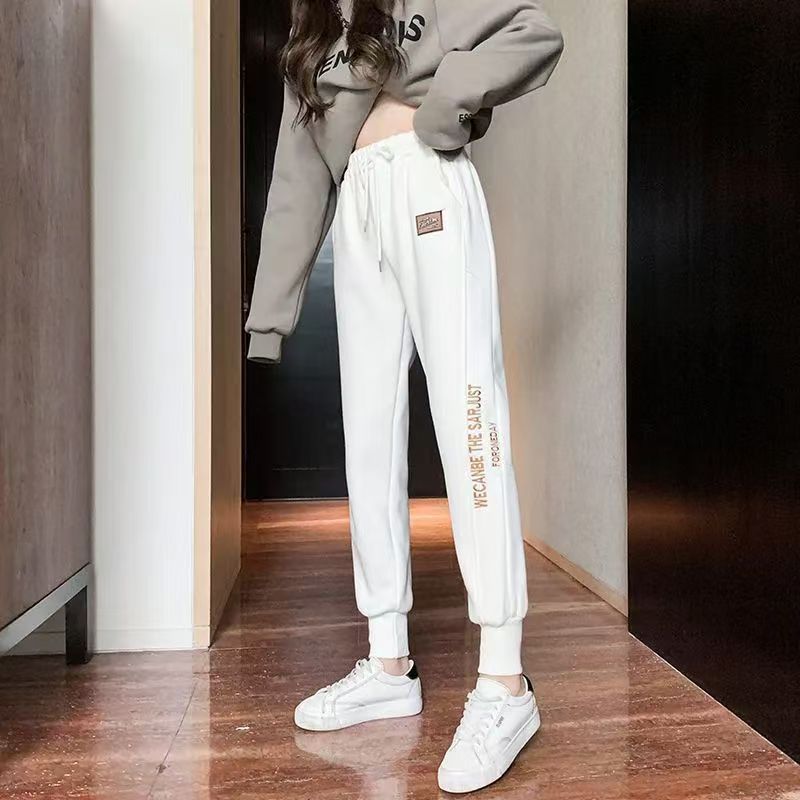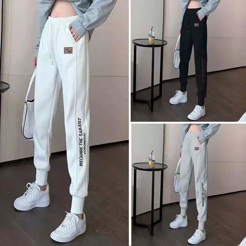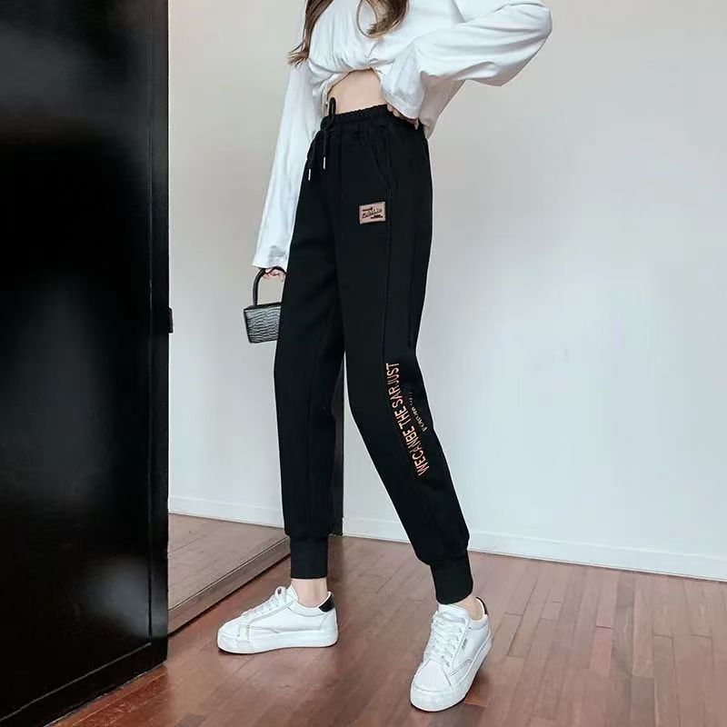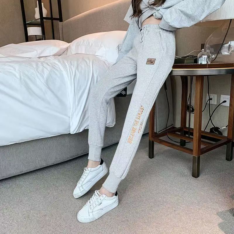 YF6168-(3色入内)秋冬新款字母刺绣松紧腰拼接萝卜型束腿运动休闲卫衣裤