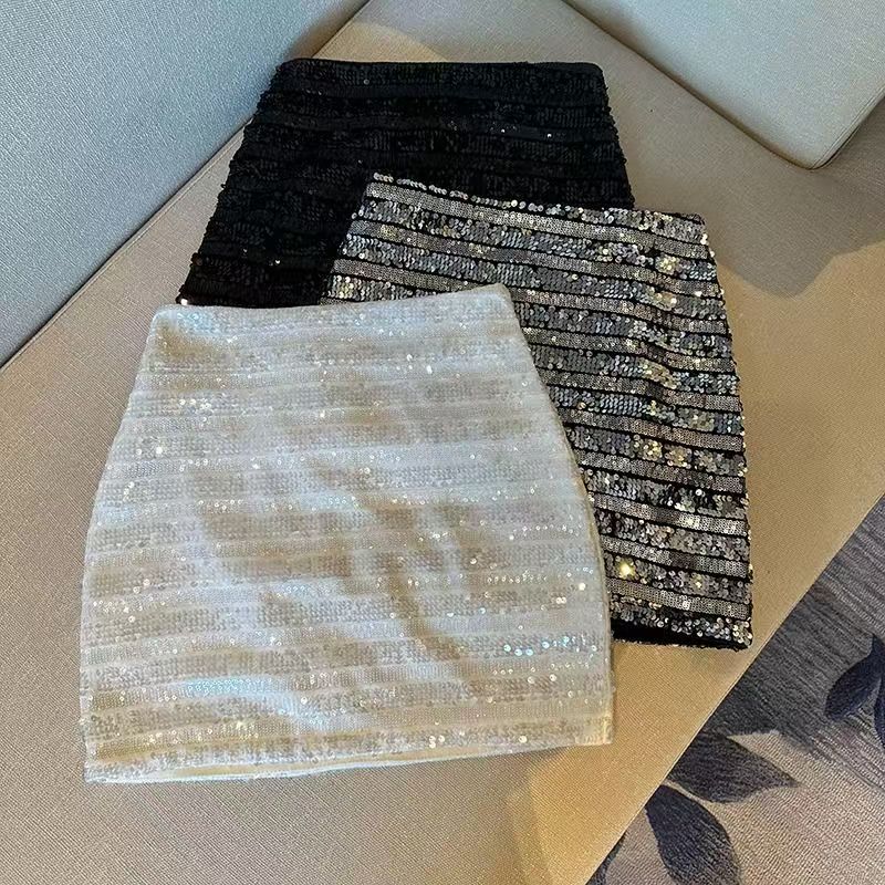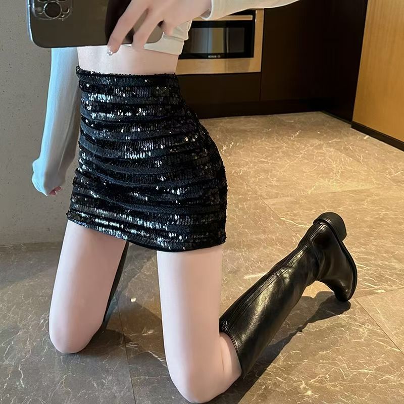 YF6178-(3色入内)洋气穿搭亮片高腰A字半身渐近纹包臀收腰秋冬新款半身裙