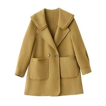 YF6194-图片色日系秋冬新款长袖不规则叠领排扣束带修腰高级感毛呢大衣