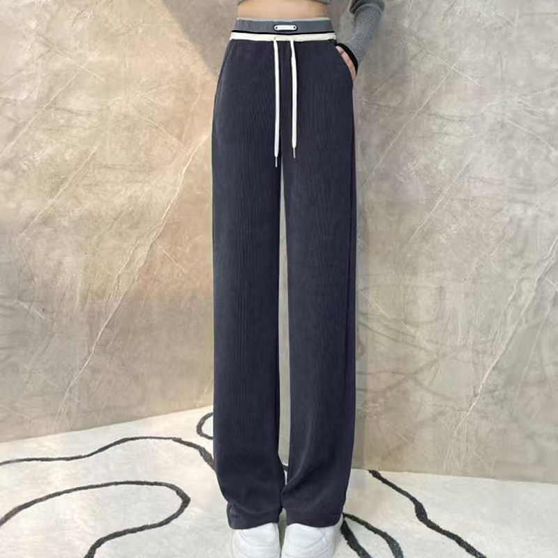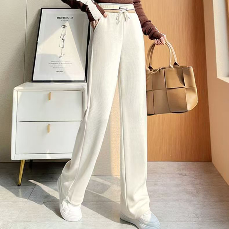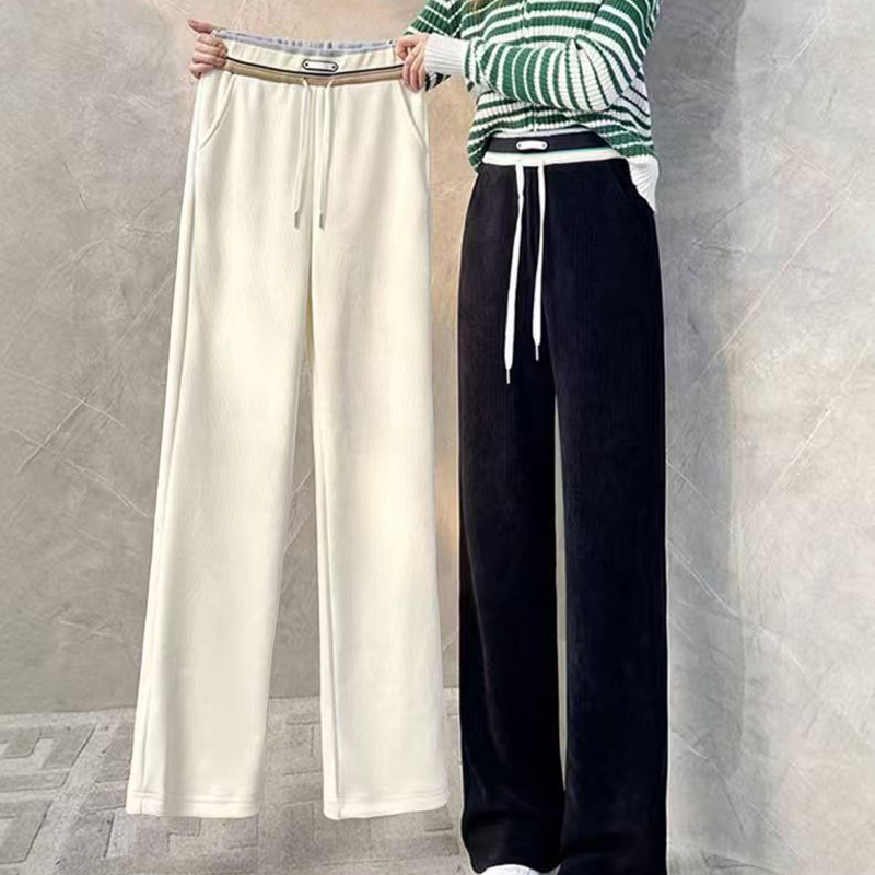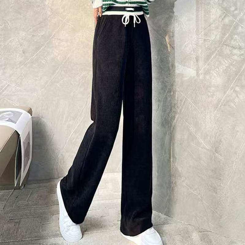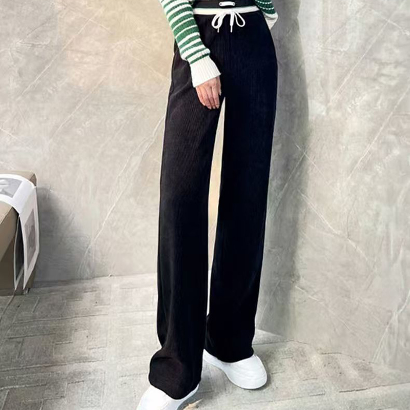 YF6200-(3色入内)韩版贴标松紧腰绑带撞色设计直筒坠地感灯芯绒保暖休闲裤