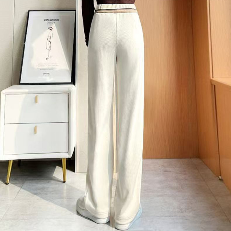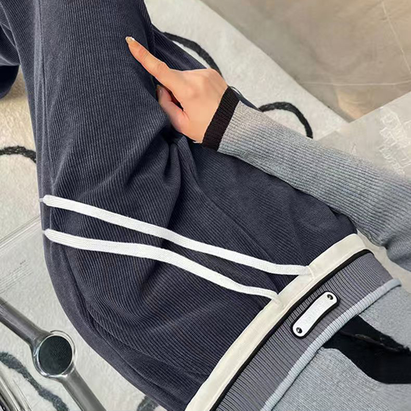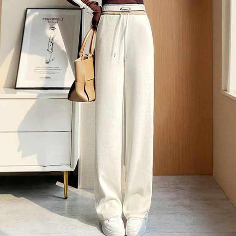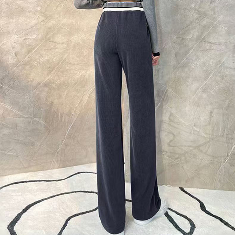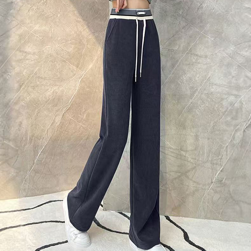 YF6200-(3色入内)韩版贴标松紧腰绑带撞色设计直筒坠地感灯芯绒保暖休闲裤