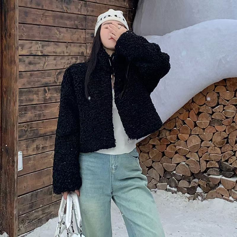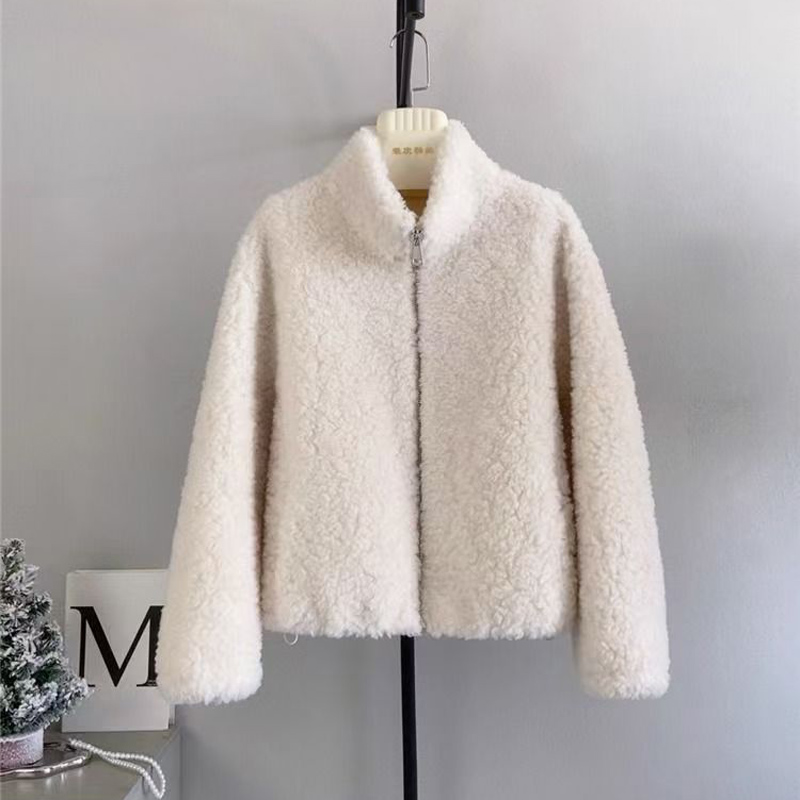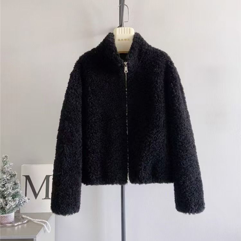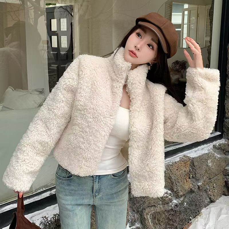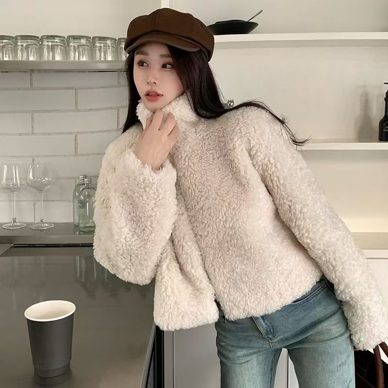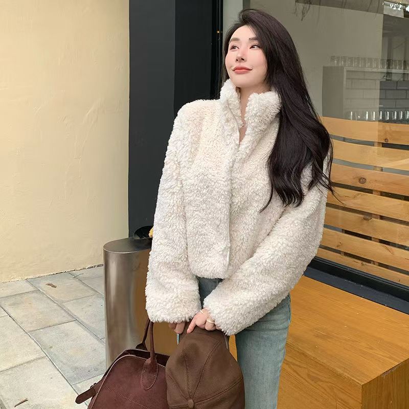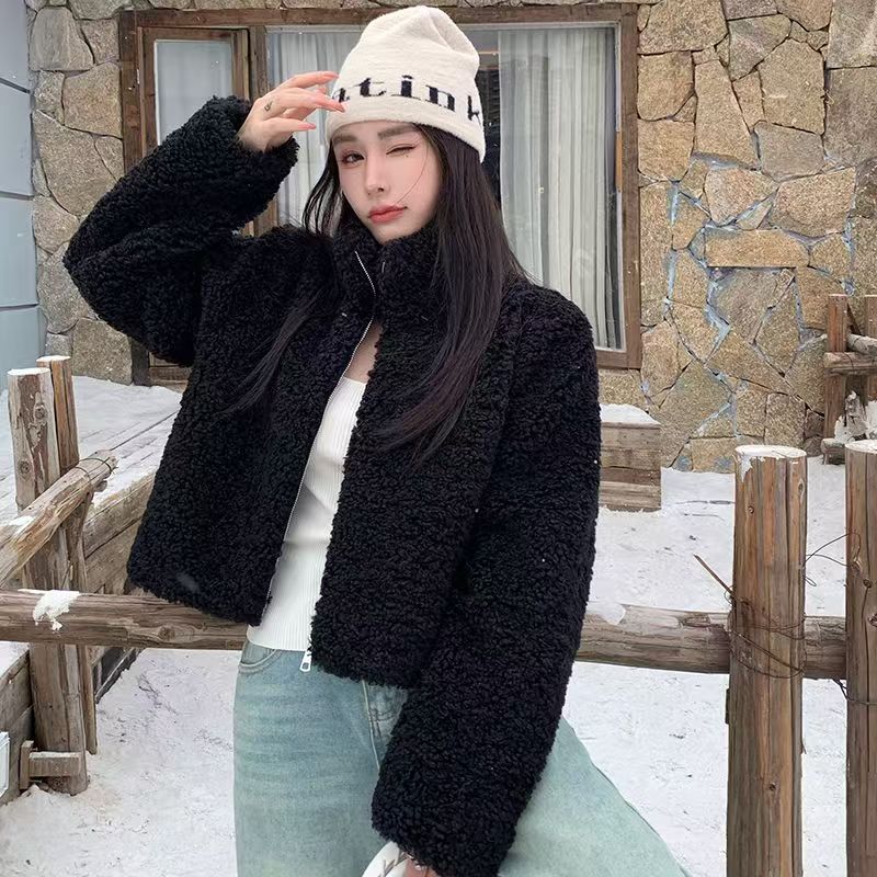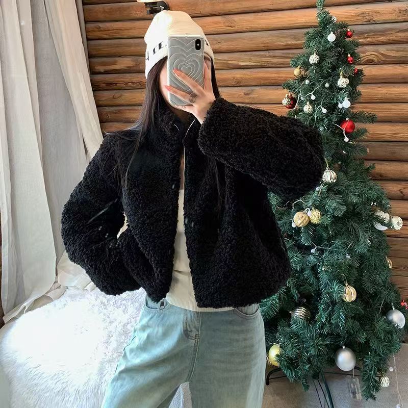 YF6206-(2色入内)高级感长袖立领拉链加厚羊羔绒亲肤宽松大码冬装外套