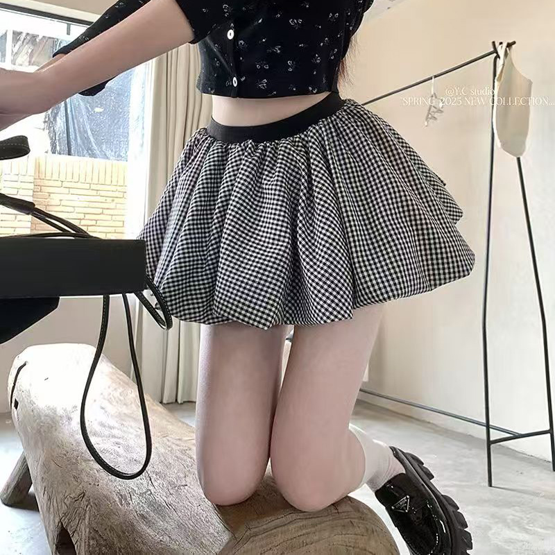 YF6219-(3色入内)辣妹芭蕾花苞设计松紧腰收腹显瘦防走光内搭蓬蓬短裙