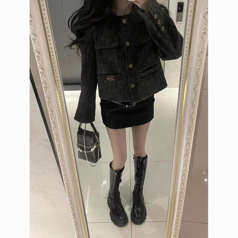 YF6225-图片色韩版纯色时尚保暖毛呢高腰包臀显瘦百搭黑色A字防走光短裙