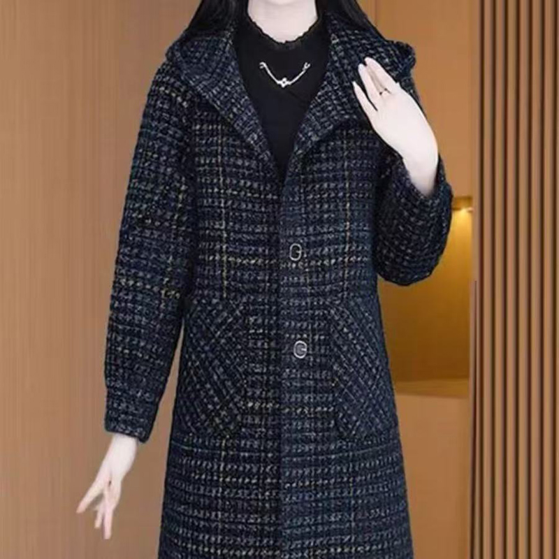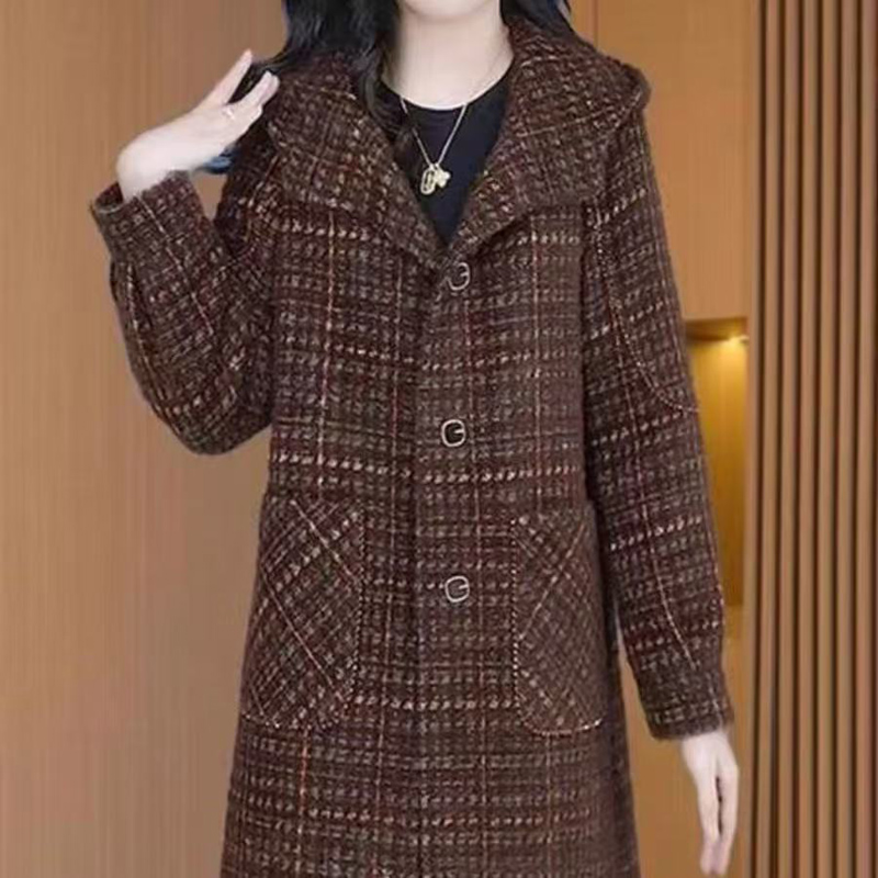 YF6241-(2色入内)加绒加厚长袖翻领系扣中长款毛呢宽松显瘦休闲风衣外套