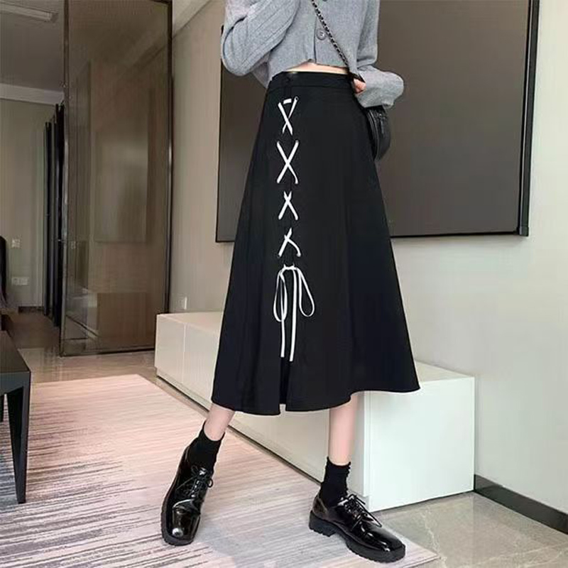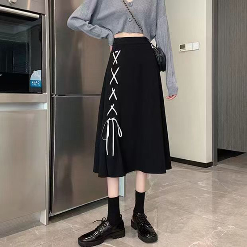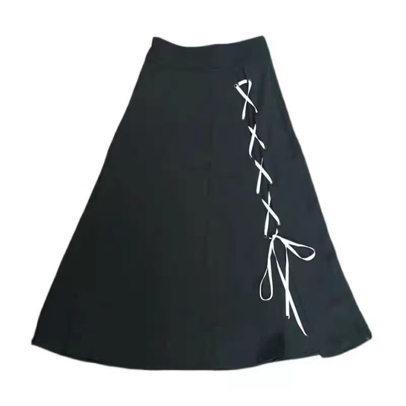 YF6242-图片色时尚侧圈圈穿绳收腹高腰A字中长款胖MM优雅气质半身