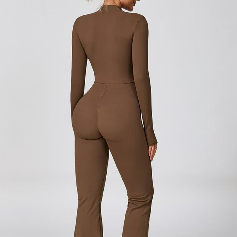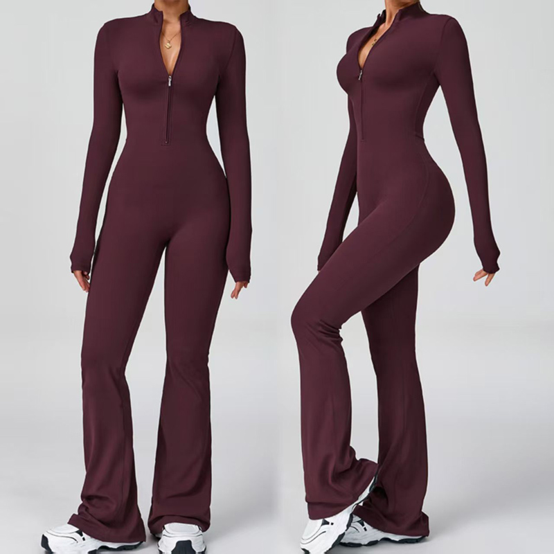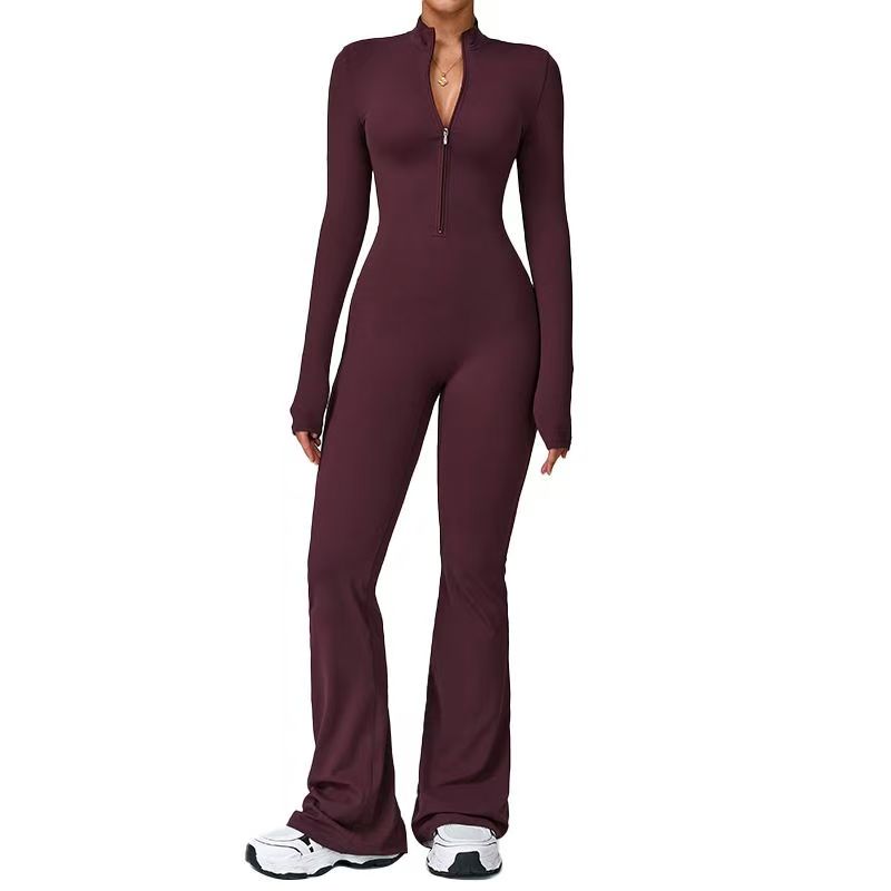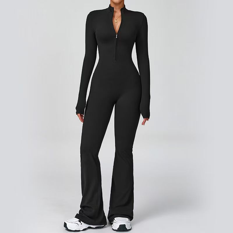 YF6251-(4色入内)辣妹运动休闲长袖拉链弹力修身提臀紧身健身瑜珈连体裤