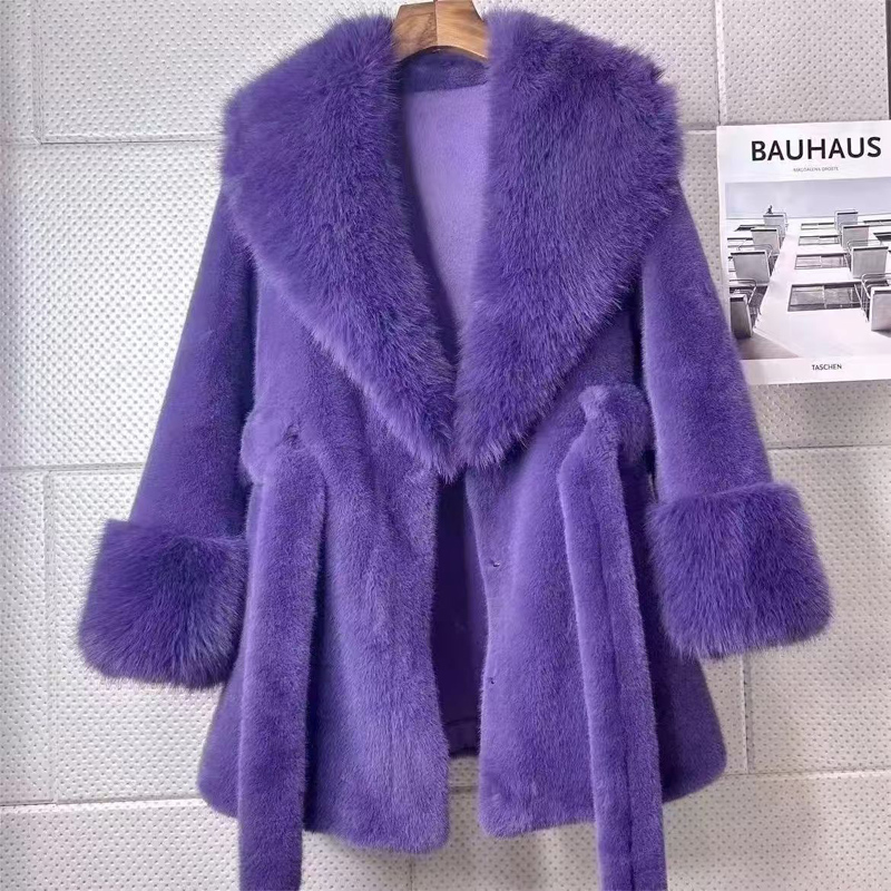 YF6264-(4色入内)高级感长款腰带修腰显瘦加绒加厚名媛气质仿皮草大衣外套