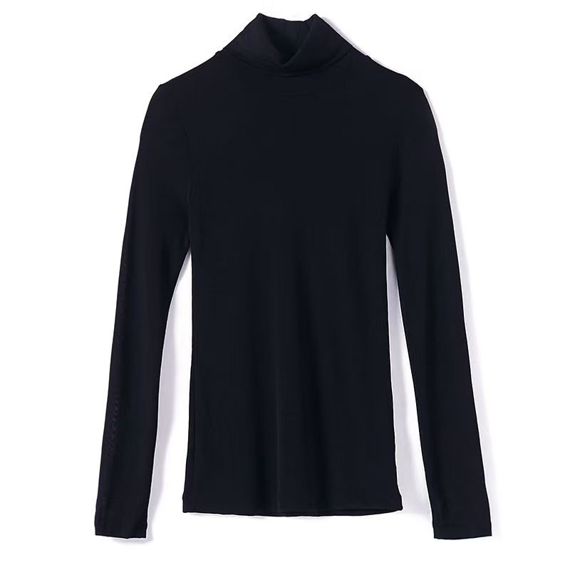 YF6294-(9色入内)高级感蕾丝秋冬百搭打底衫 透视长袖半高领弹力蕾丝上衣