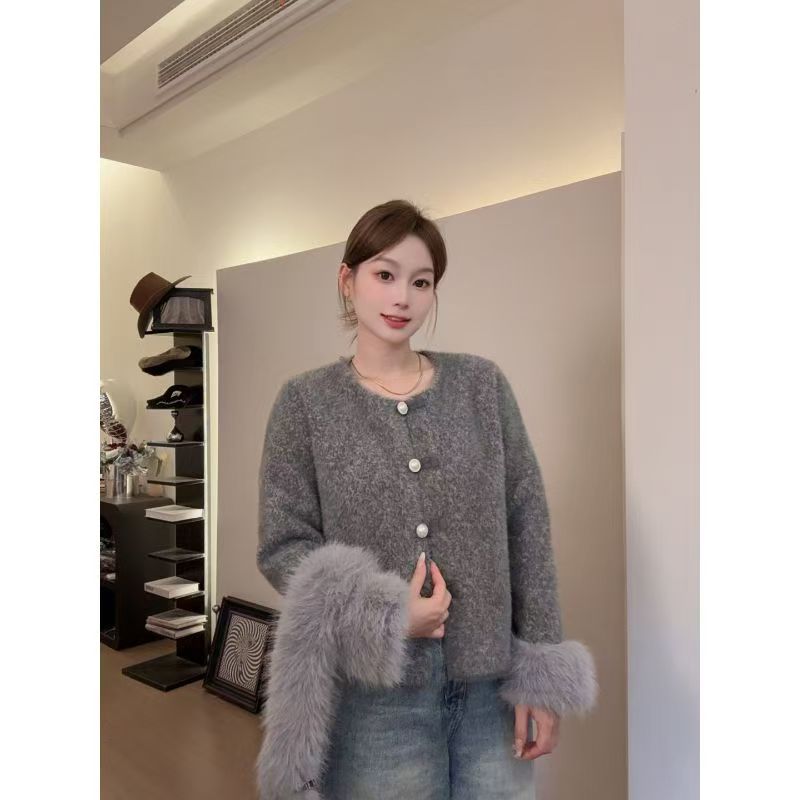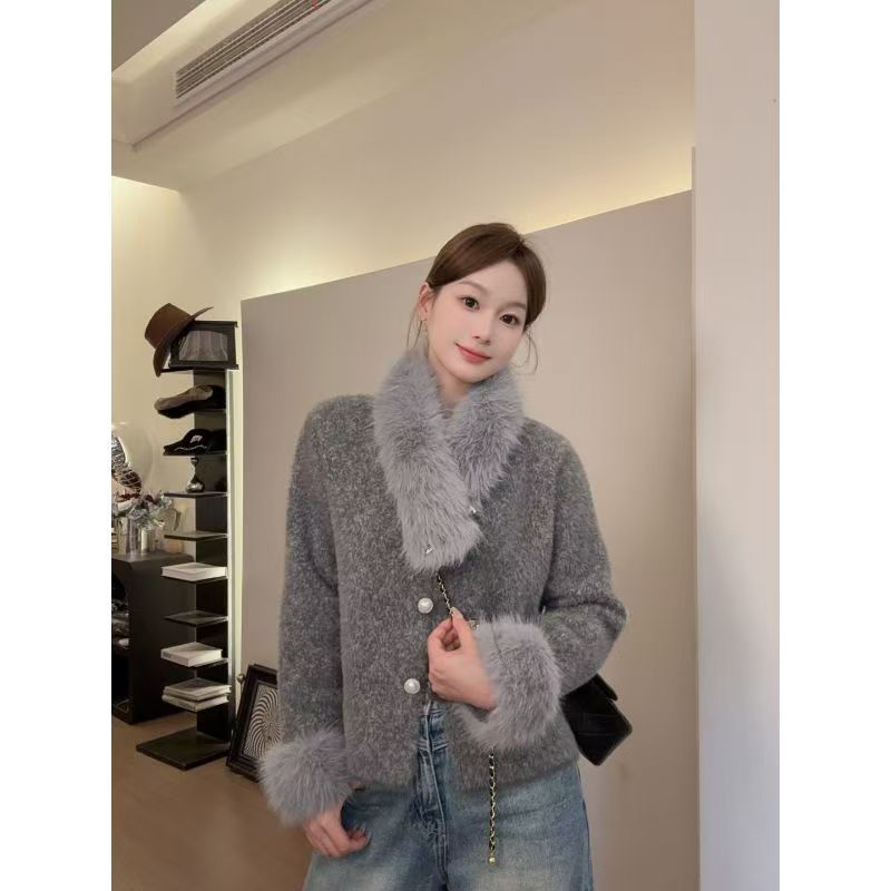 YF6299-图片色名媛气质可拆毛毛领系扣毛呢保暖冬装短款开衫外套冬季新款