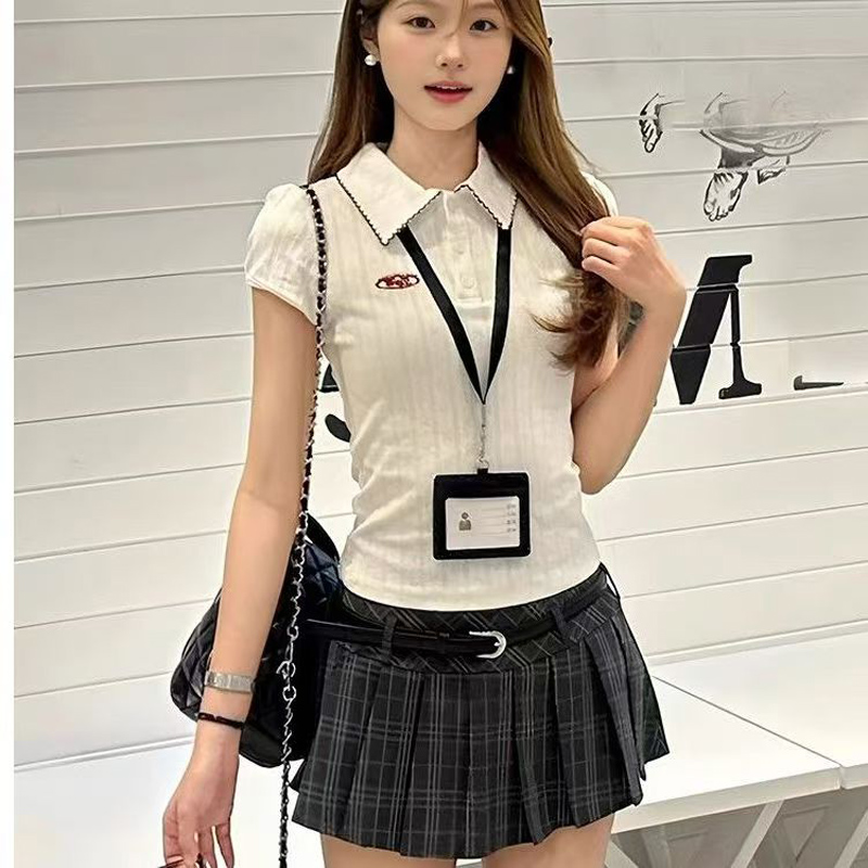 YF6301-图片色辣妹时尚格子短裙 学院风复古格子A字防走光百褶半身