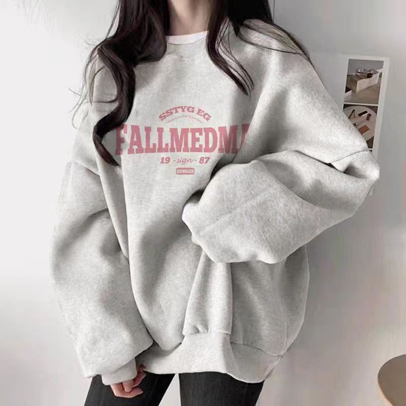 YF6327-(4色入内)学院风长袖连帽宽松大码洋气印花慵懒风日系休闲卫衣外套