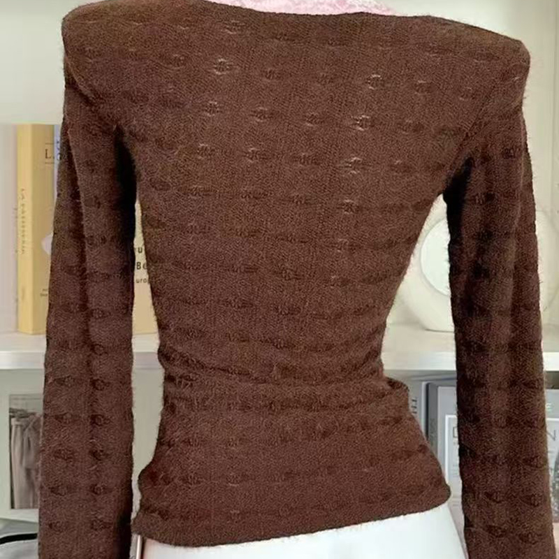 YF6356-图片色名媛气质仿狐狸毛钉珠设计长袖系扣加厚毛绒短款外套