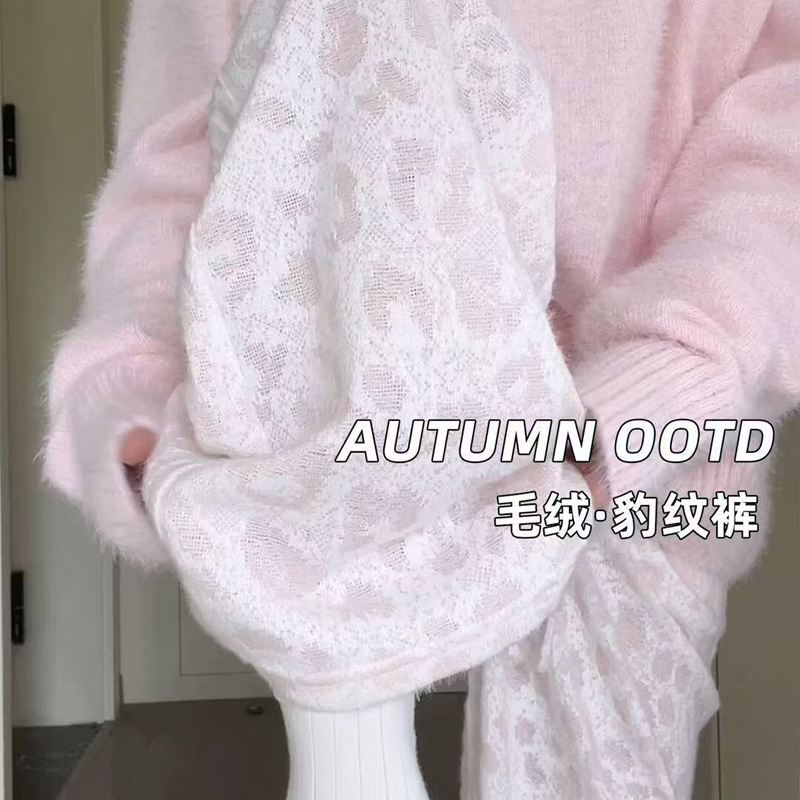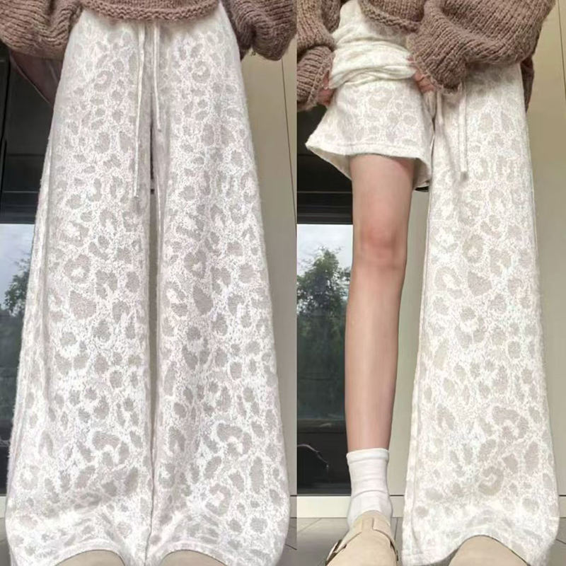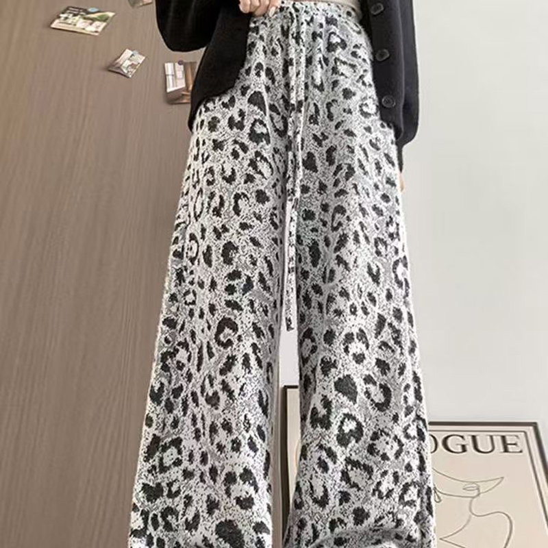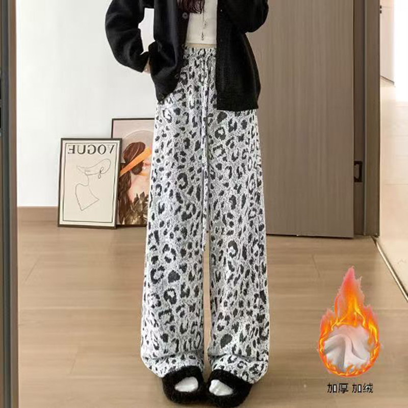 YF6374-(2色入内)冬季加绒提花豹纹直筒坠地感松紧腰复古风港式休闲阔腿裤