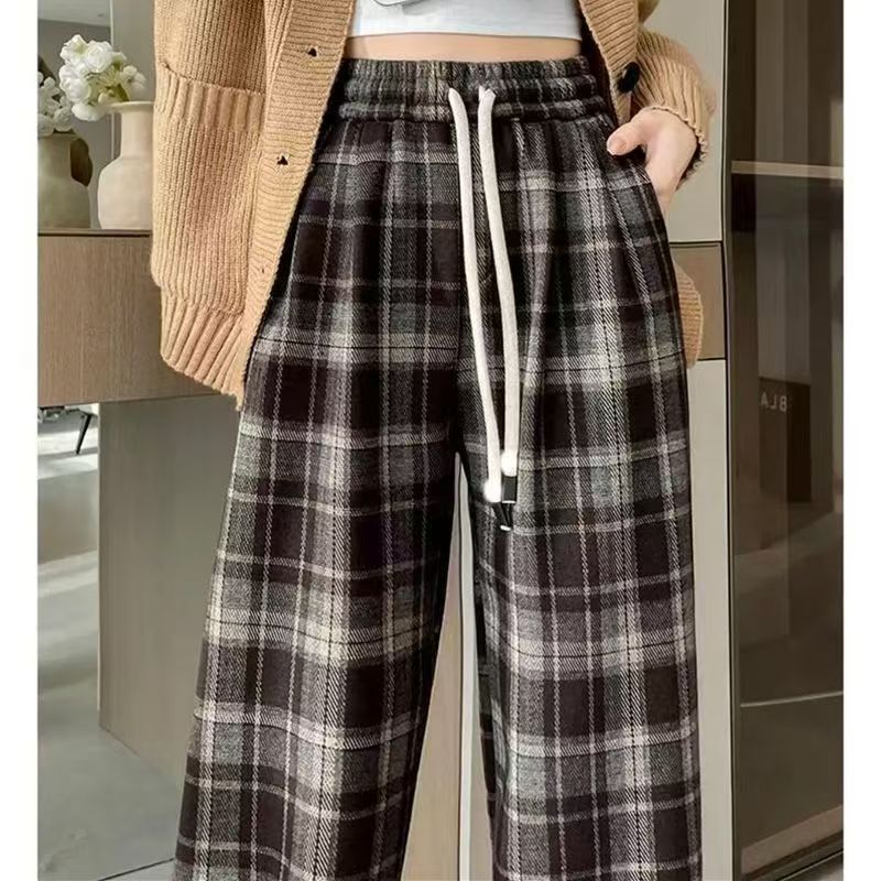 YF6389-(2色入内)秋冬抽绳松紧腰坠地感直筒阔腿复古百搭新款休闲裤