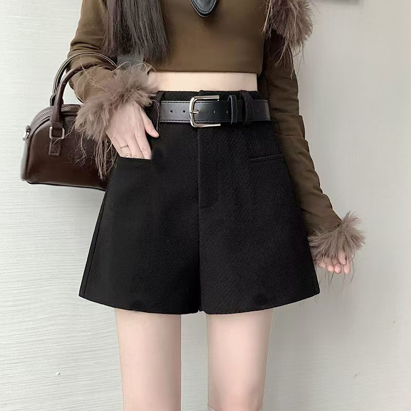 YF6394-(3色入内)冬季2025新款A字阔腿辣妹显高加厚毛呢休闲外穿纯色百搭短裤