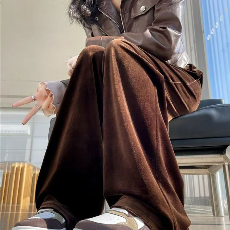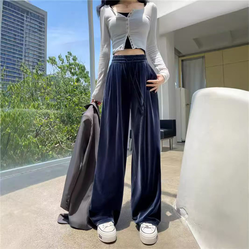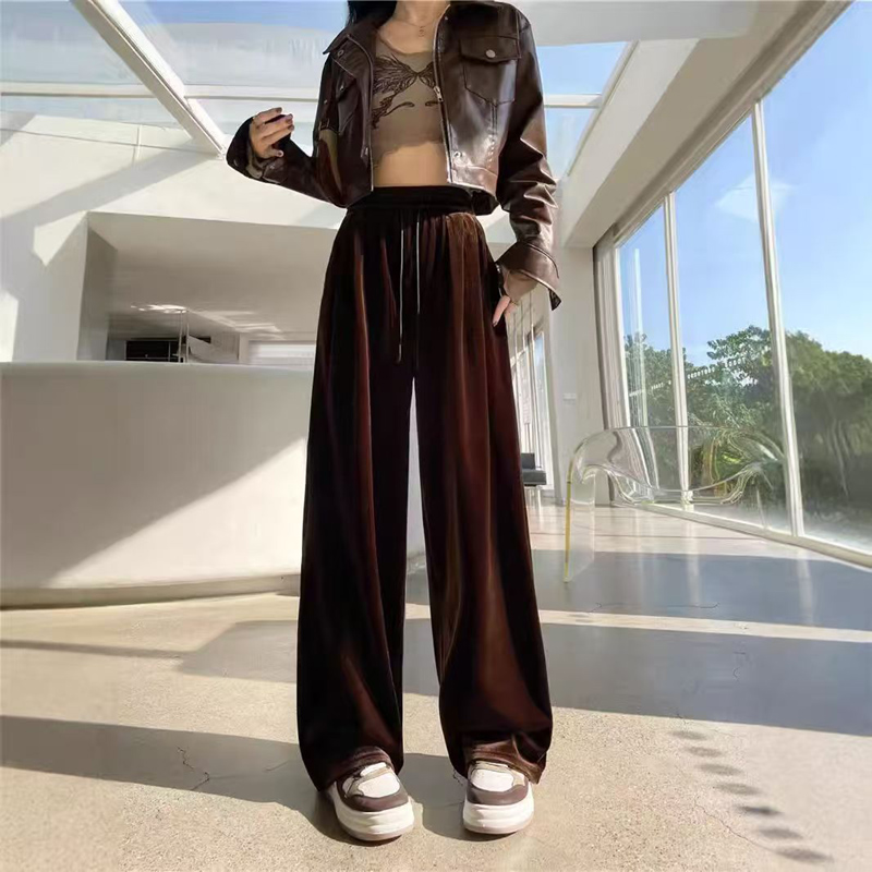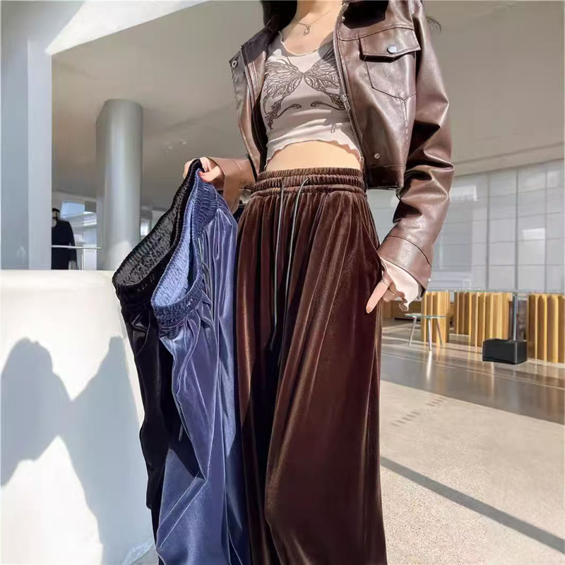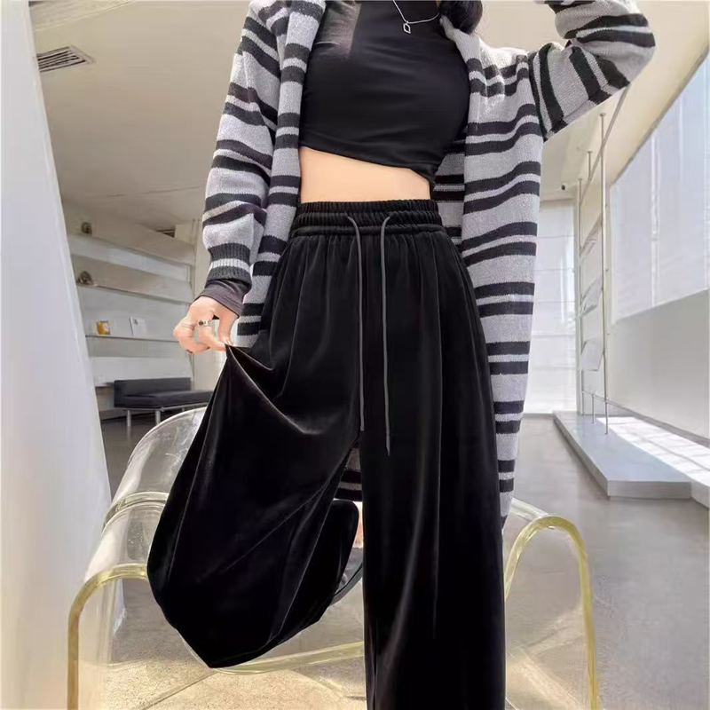 YF6423-(3色入内)尚精品柔顺时金丝绒加厚保暖松紧腰抽绳直筒坠地感休闲裤