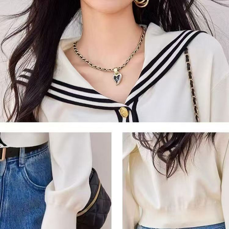 YF6434-图片色韩版秋冬百搭长袖V领爱心纽扣小心机设计感弧边修身上衣