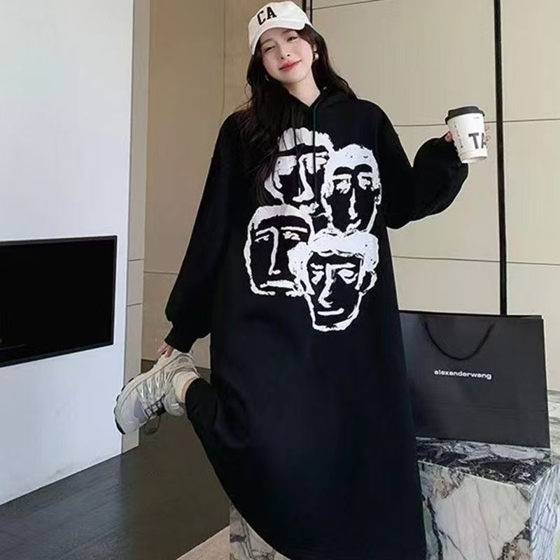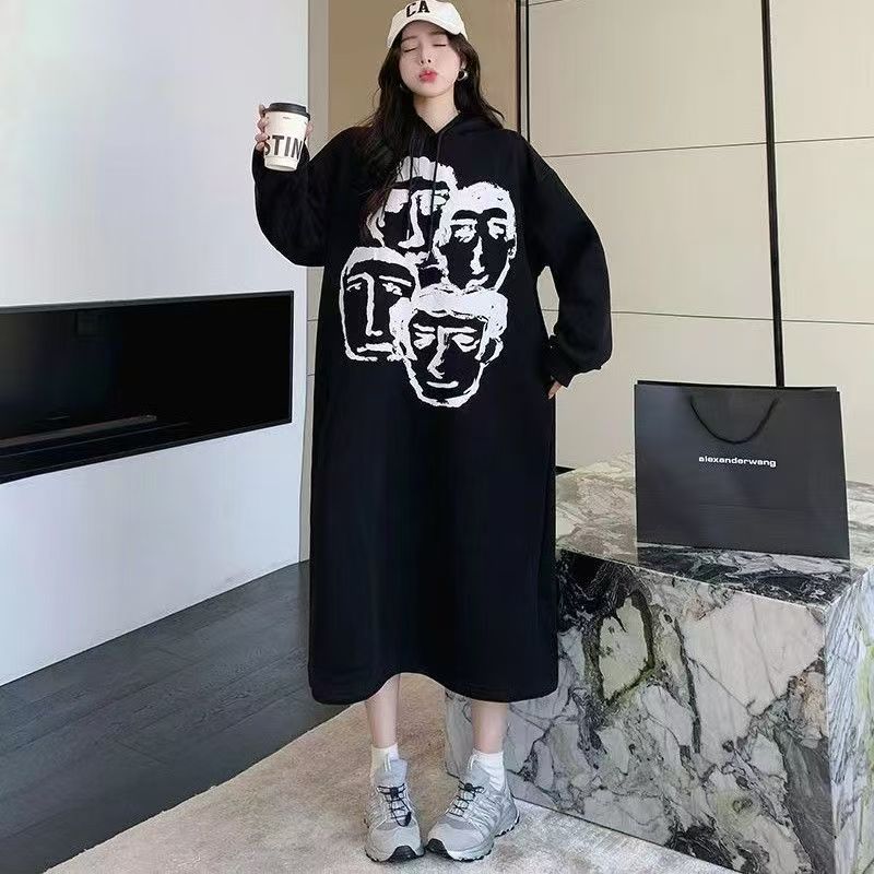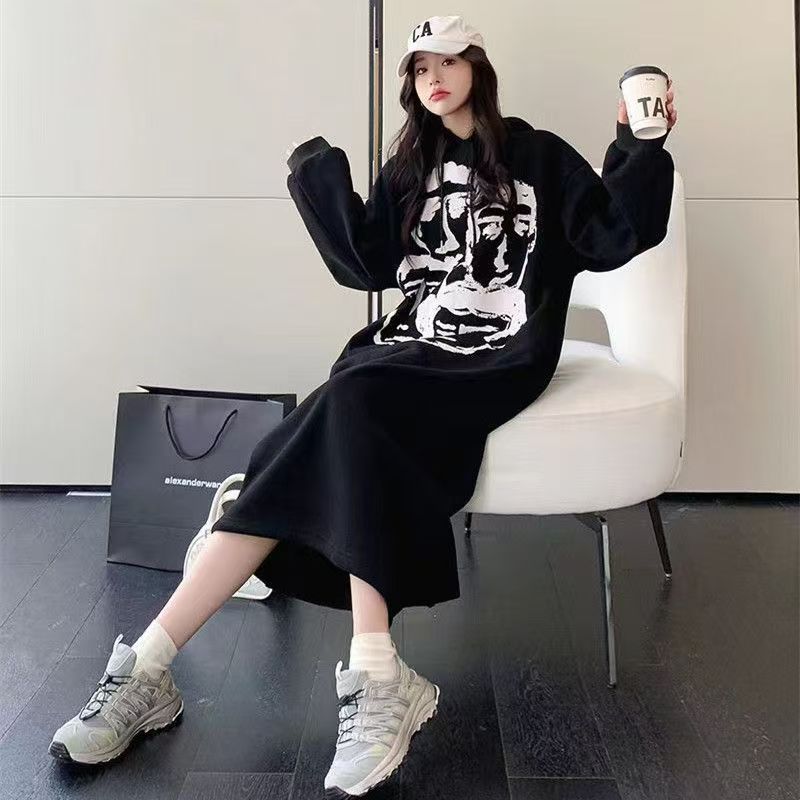 YF6456-(2É«ÈëÄÚ£©¸Ûʽ¶¬¼¾Ð¿îС¿É°®²ÝñÐÜÐÜÓ¡»¨³¤ÐäÁ¬Ã±¿ª²æ¼ÓÈÞÎÀÒÂȹ