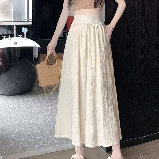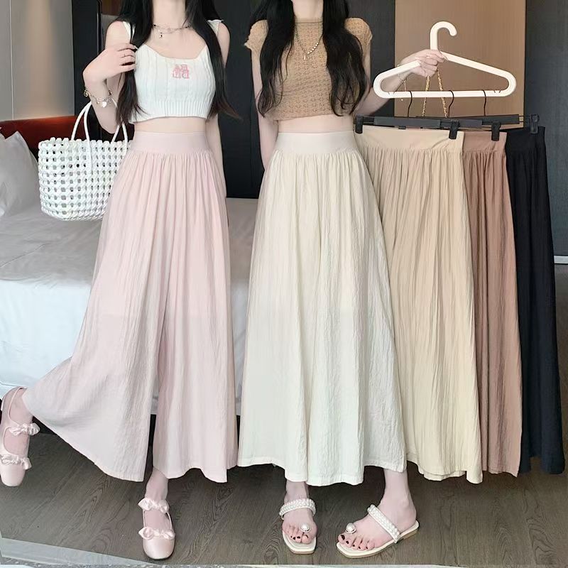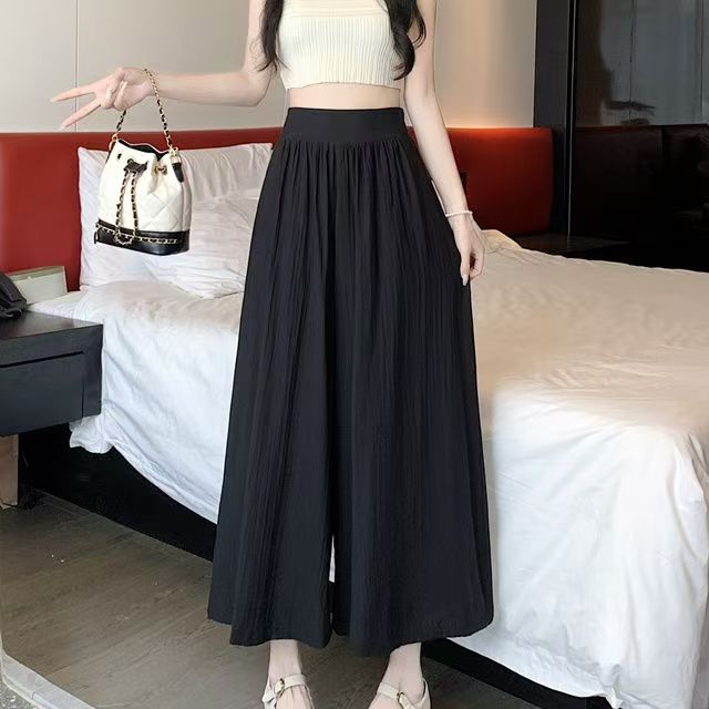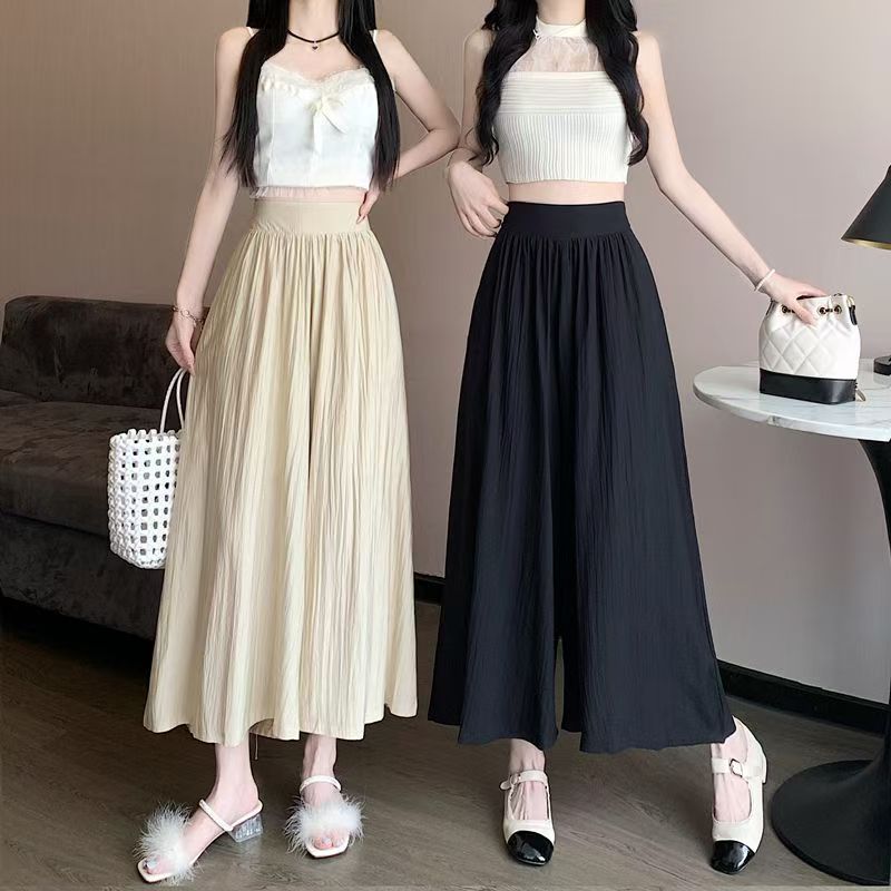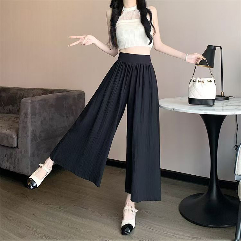 YF6470-时尚韩版收腹高腰褶折飘逸感阔腿坠地感纯色百搭休闲九分裤