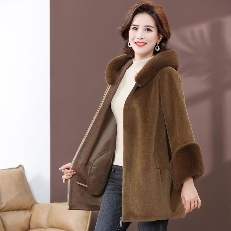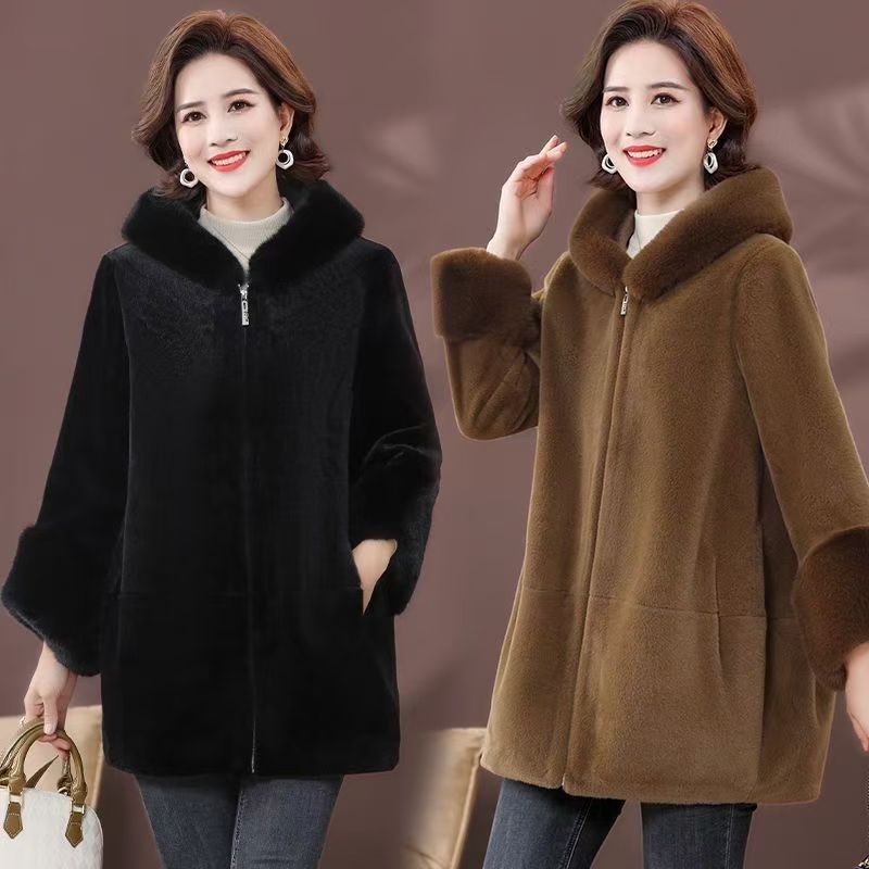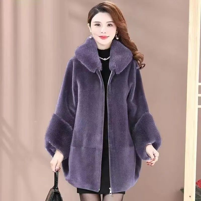 YF6472-(5色入内)韩版名媛气质大衣毛毛绒拉链加绒加厚仿皮草貂绒冬季时尚大衣