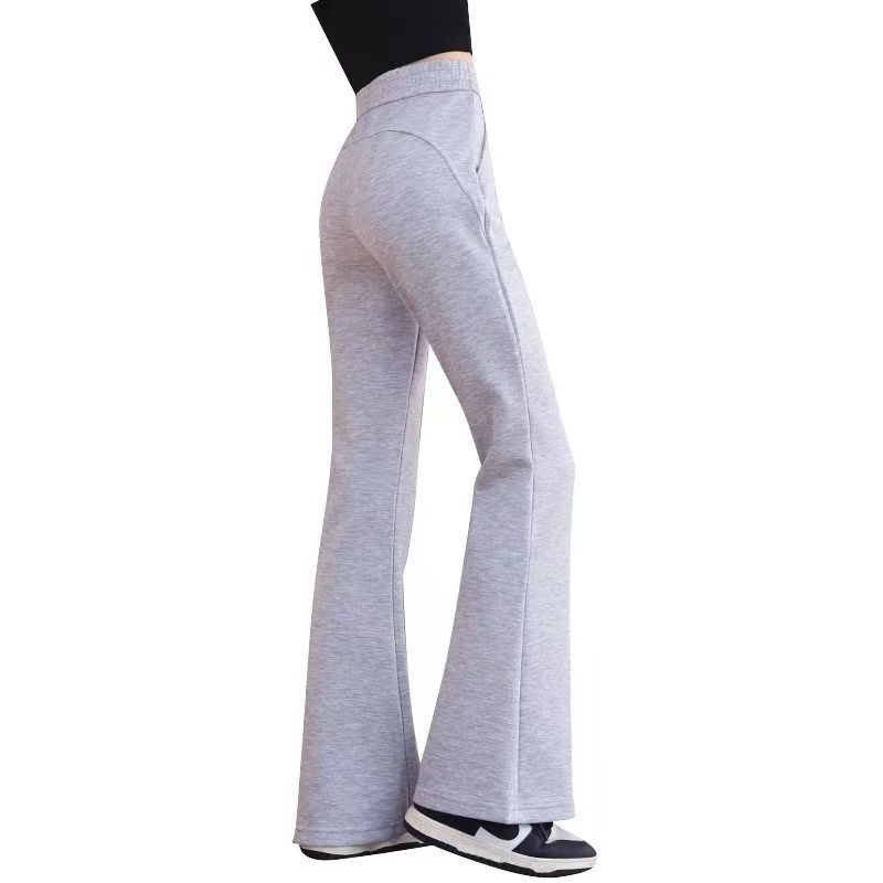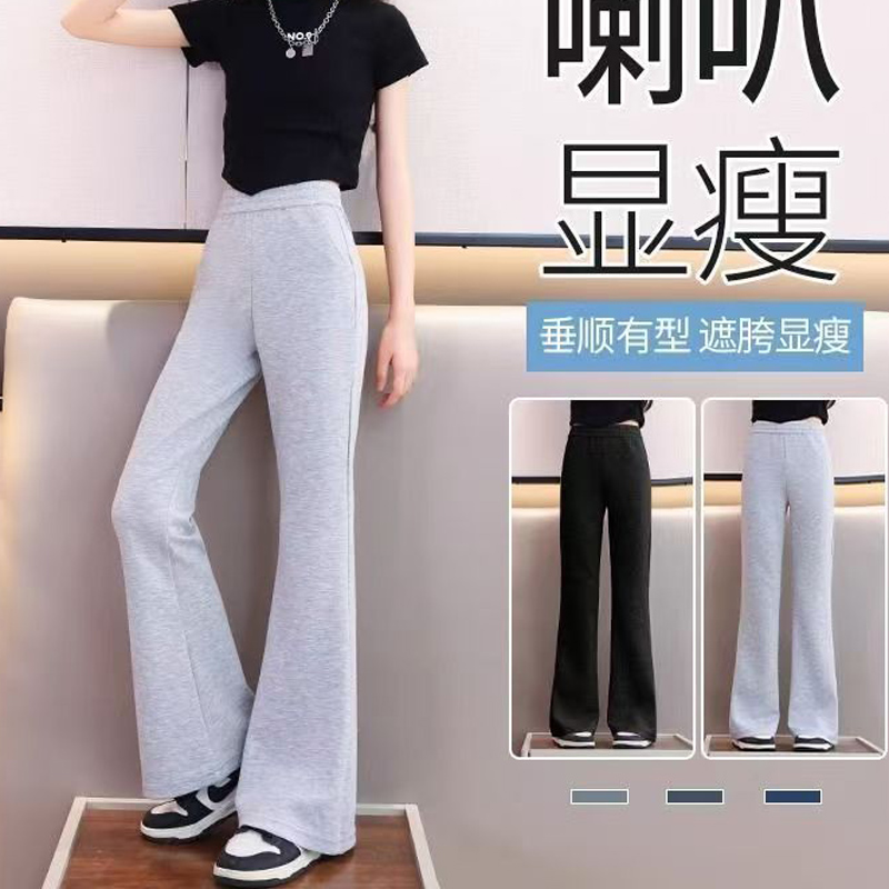 YF6473-(2色入内)学院风时尚秋冬新款松紧腰弧边拼接微喇叭卫衣运动裤