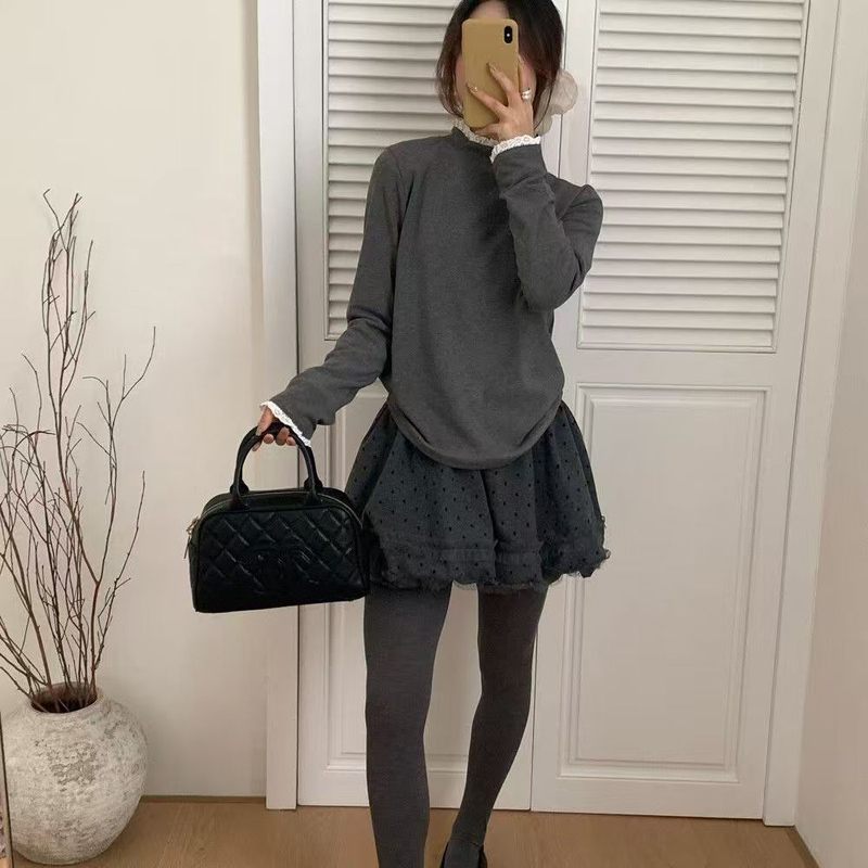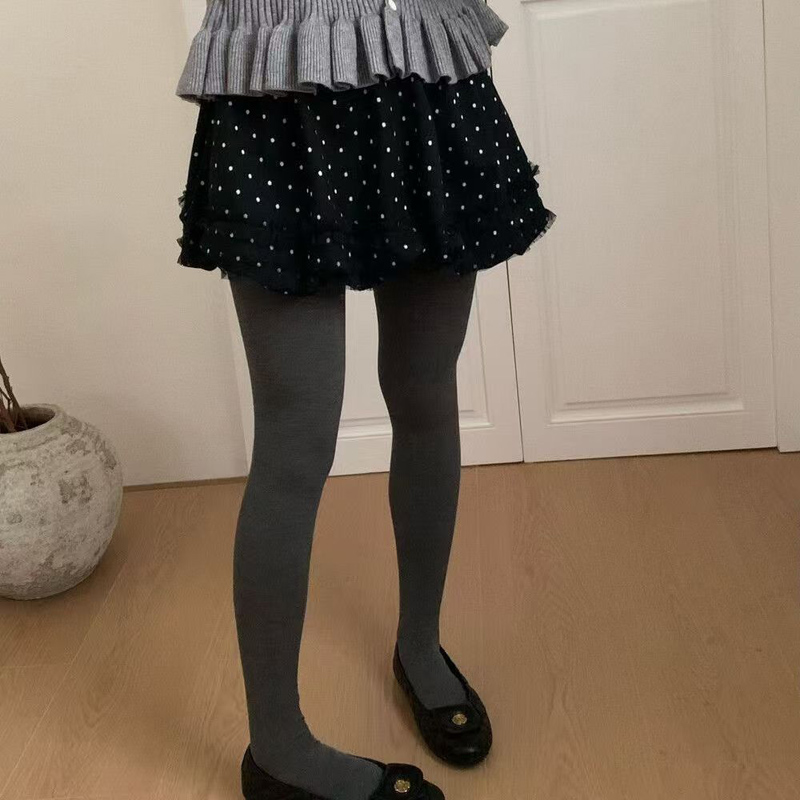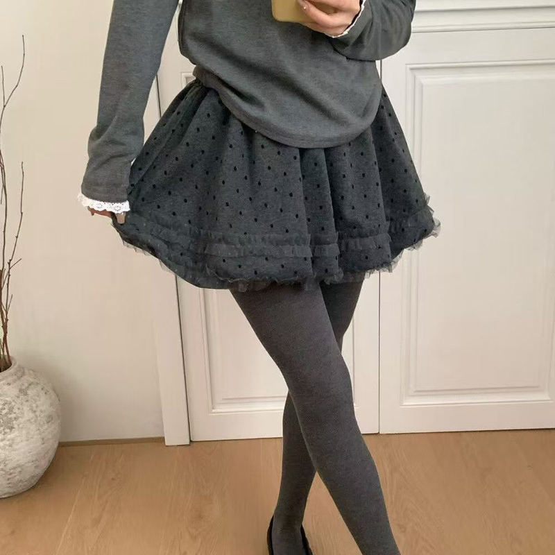 YF6477-(2色入内)辣妹时尚冬季毛呢波点蓬蓬裙 日系加绒蕾丝拼接防走光半身裙
