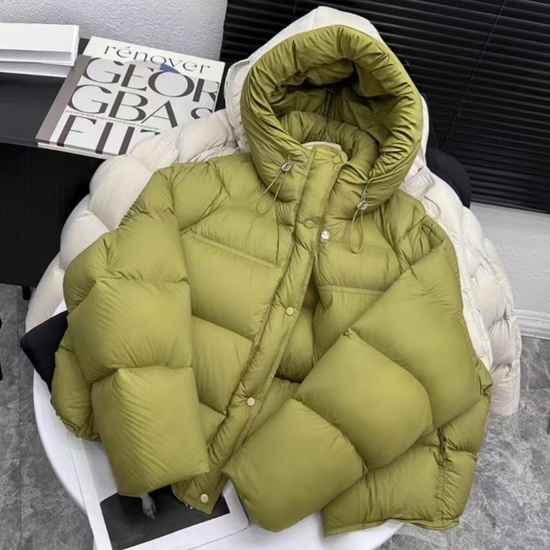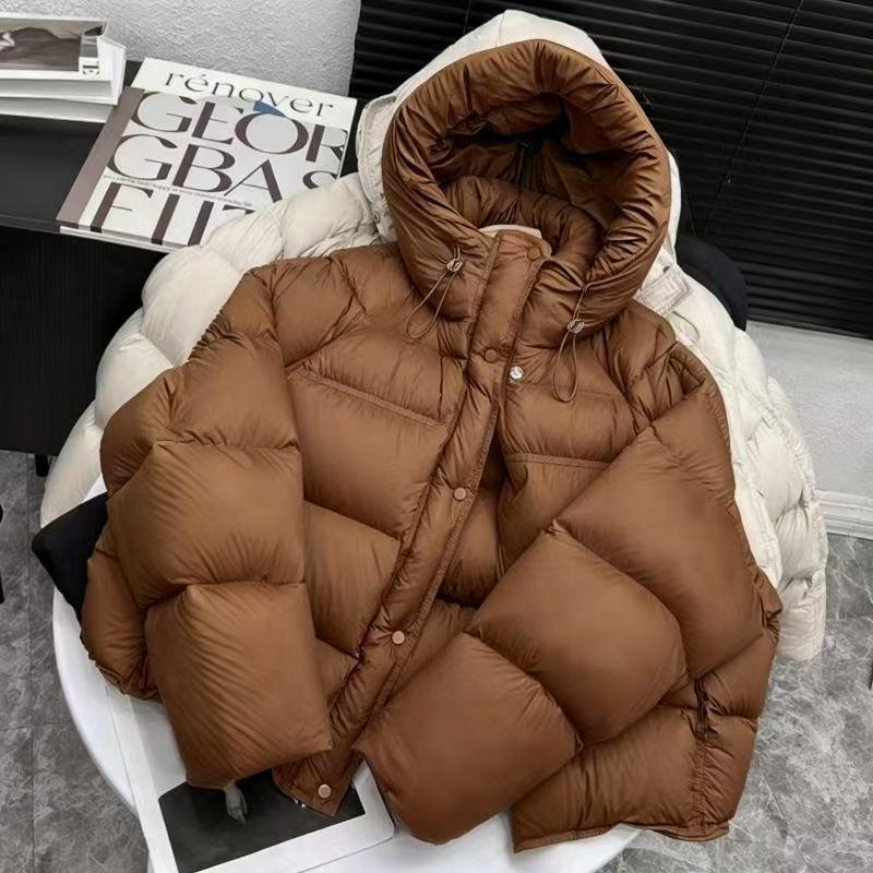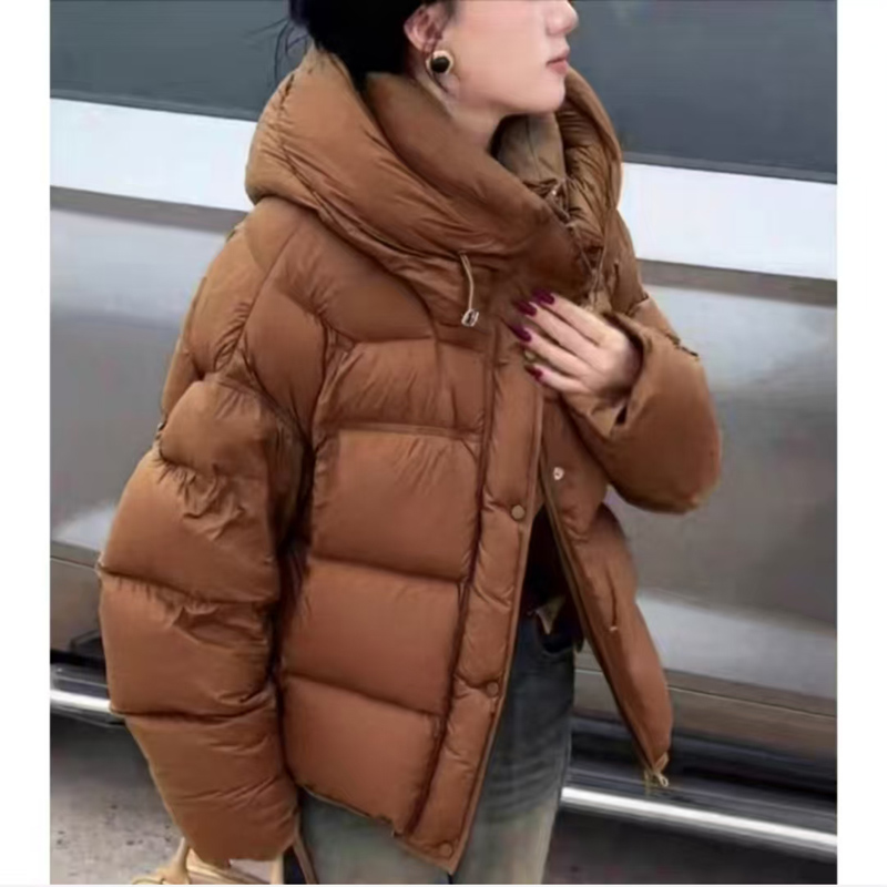 YF6482-(2色入内)加厚加绒时尚新款长袖连帽拉链系扣面包服设计羽绒夹克外套