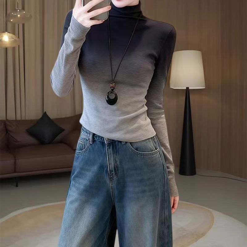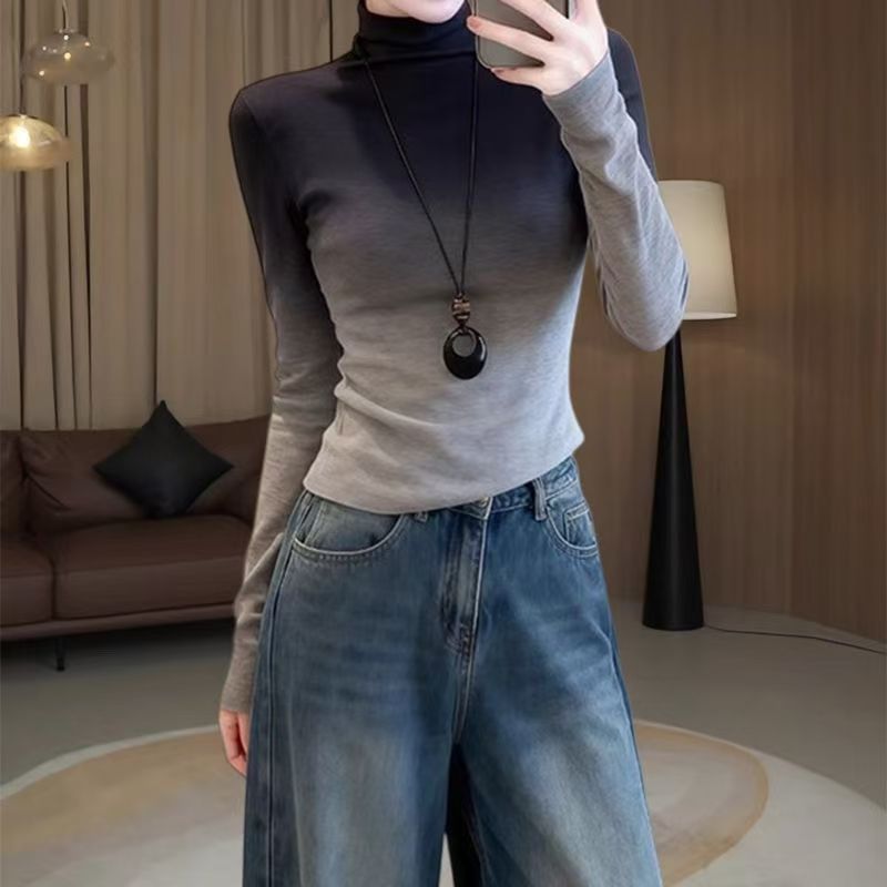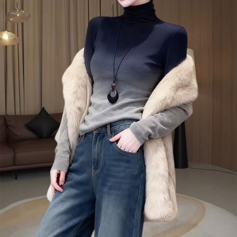 YF6587-图片色2025韩版高级感渐变色高领弹力弹力修身显瘦针织秋冬新款上衣
