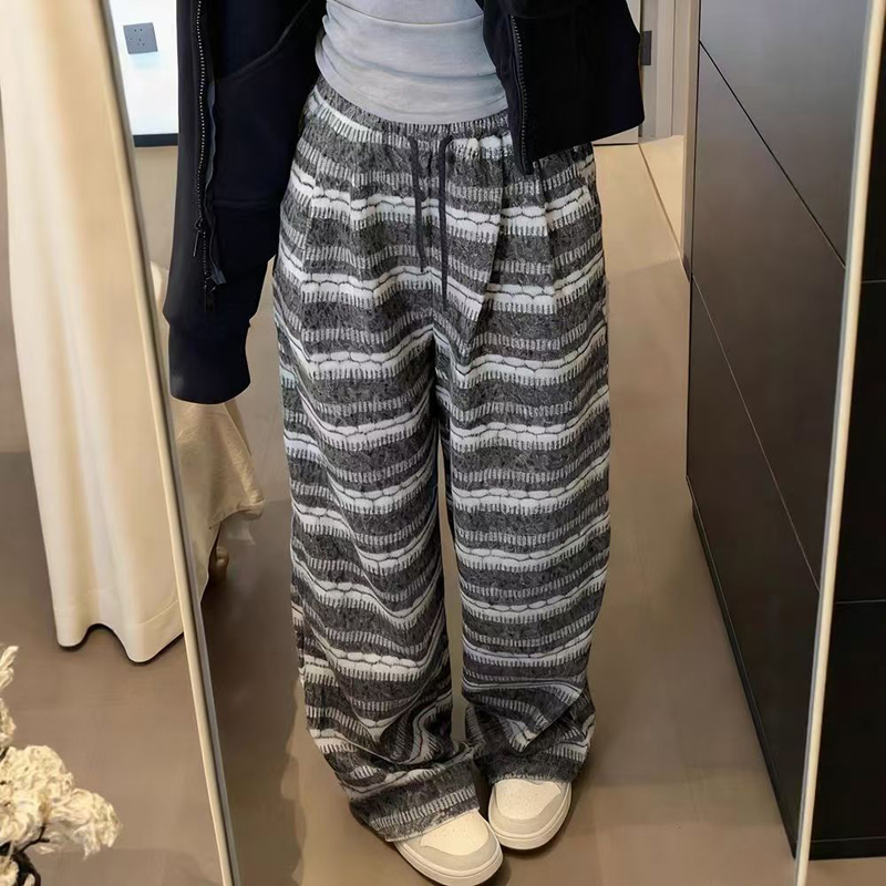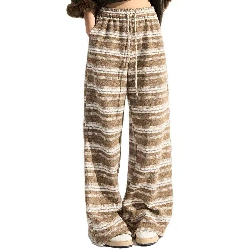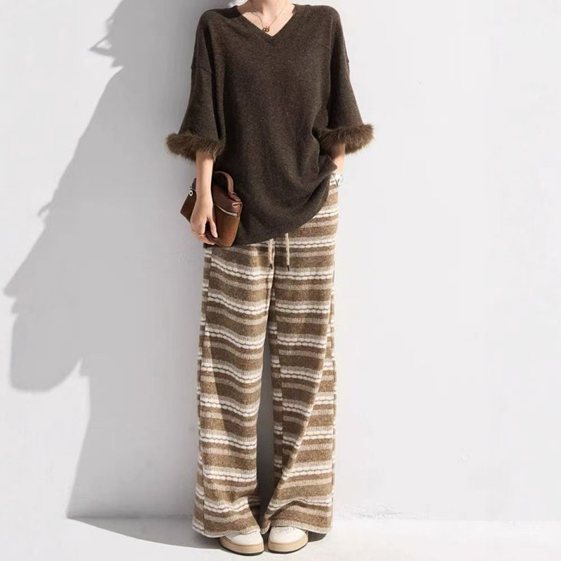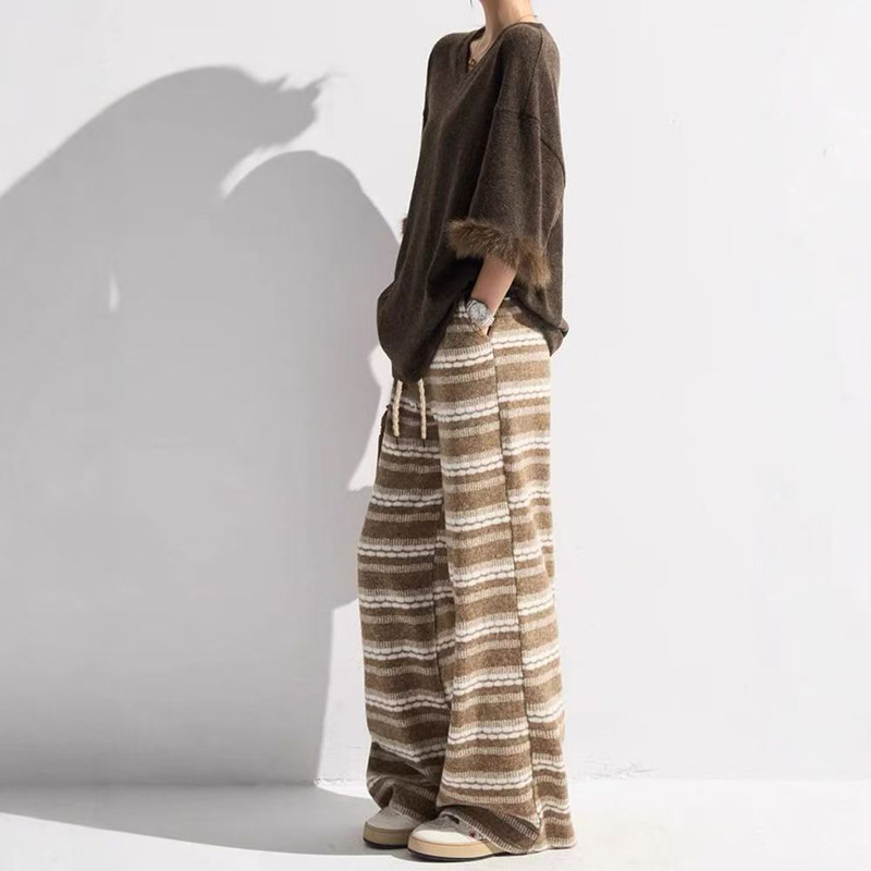 YF6491-(2色入内)秋冬时尚条纹撞紫设计直筒坠地感柔顺望风舒适保暖针织阔腿裤