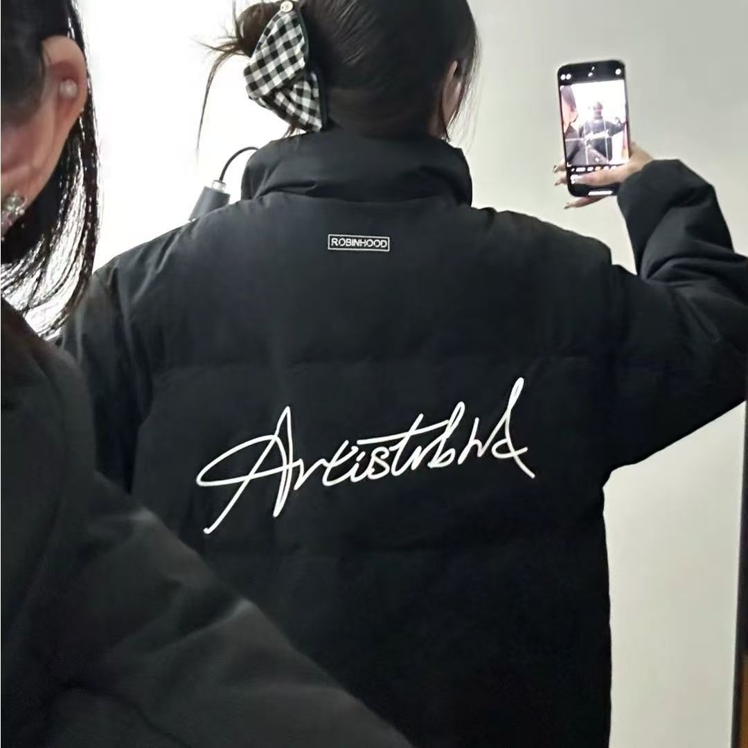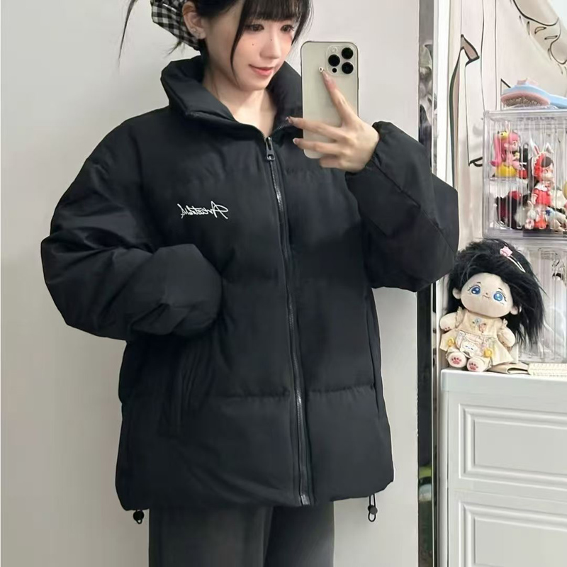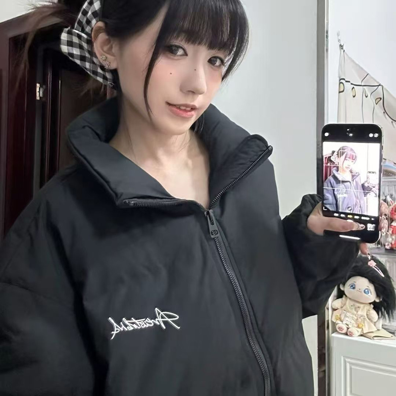 YF6497-图片色冬季新款字母刺绣加厚加绒长袖翻领拉链时尚感面包服羽绒服
