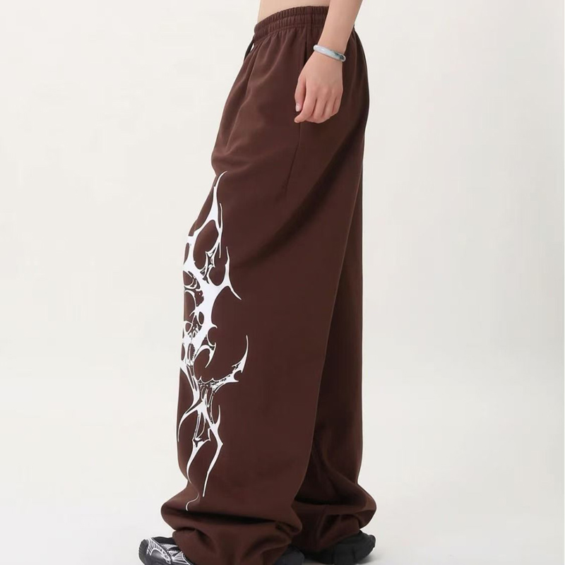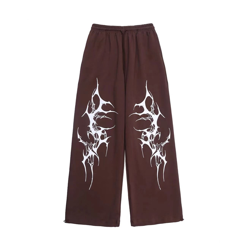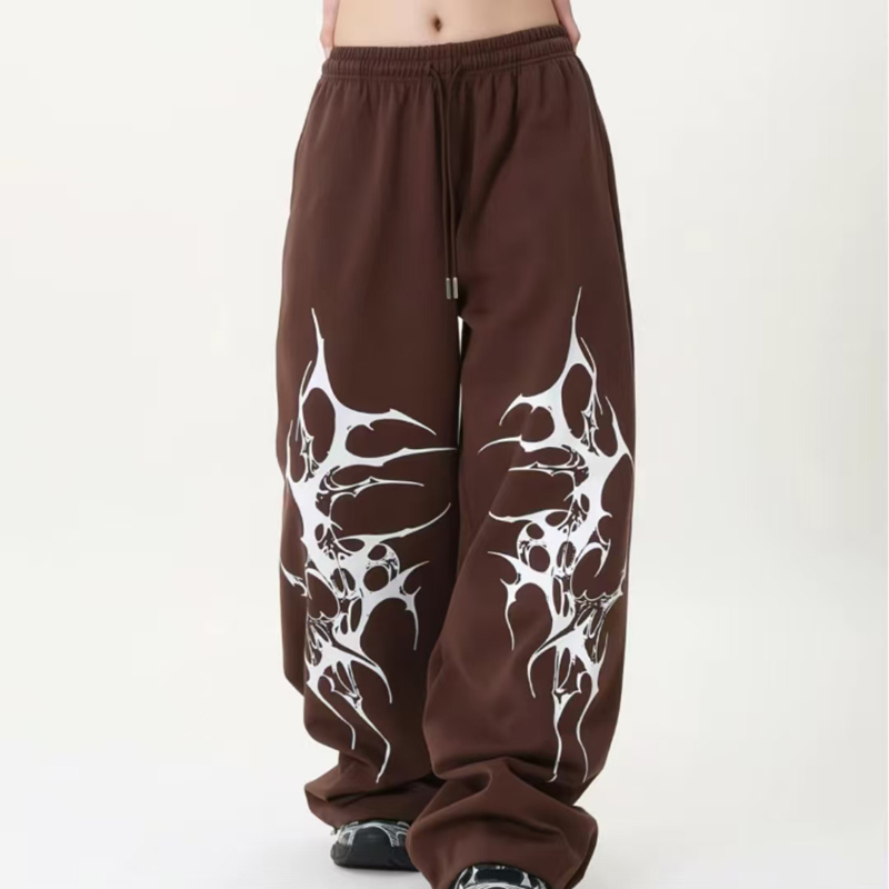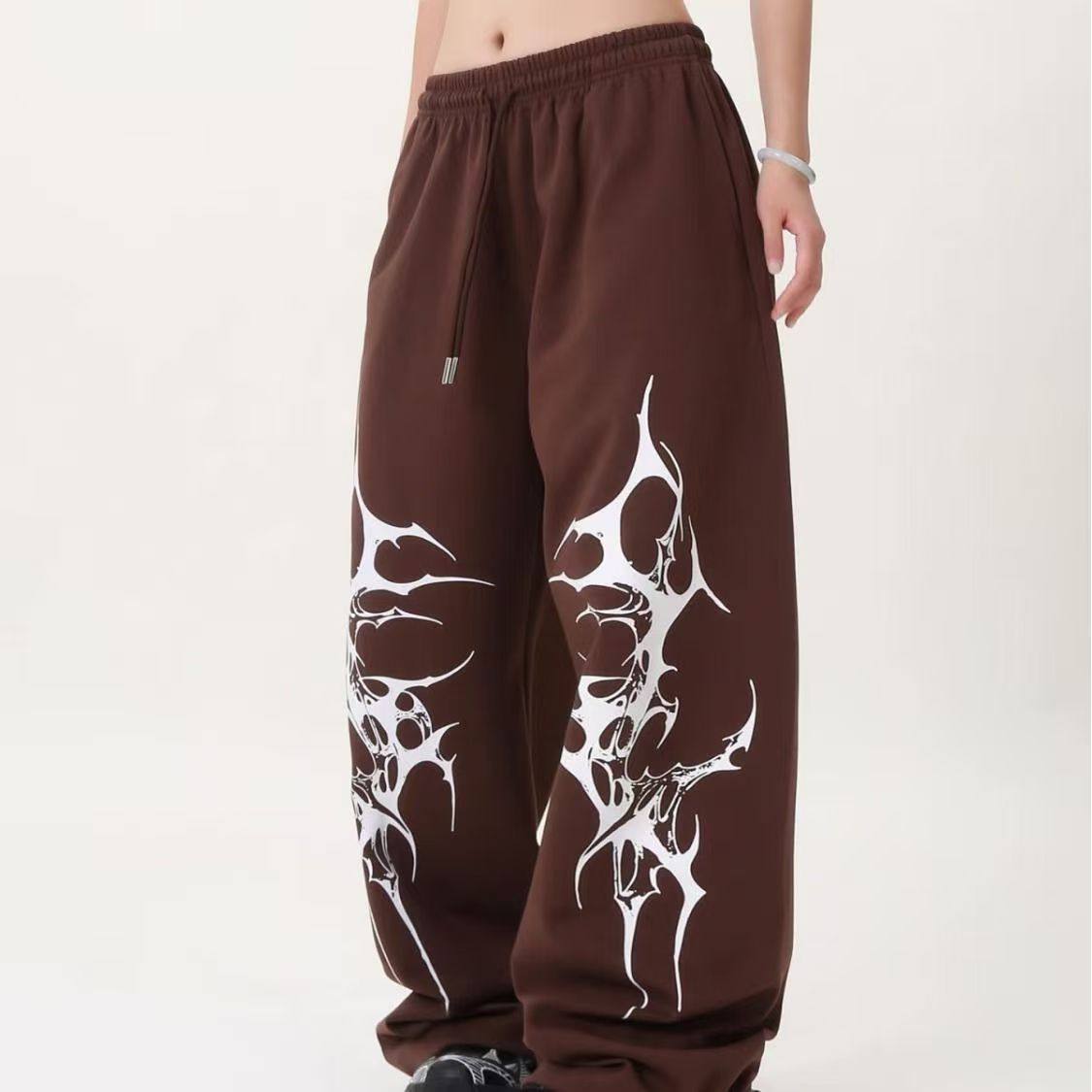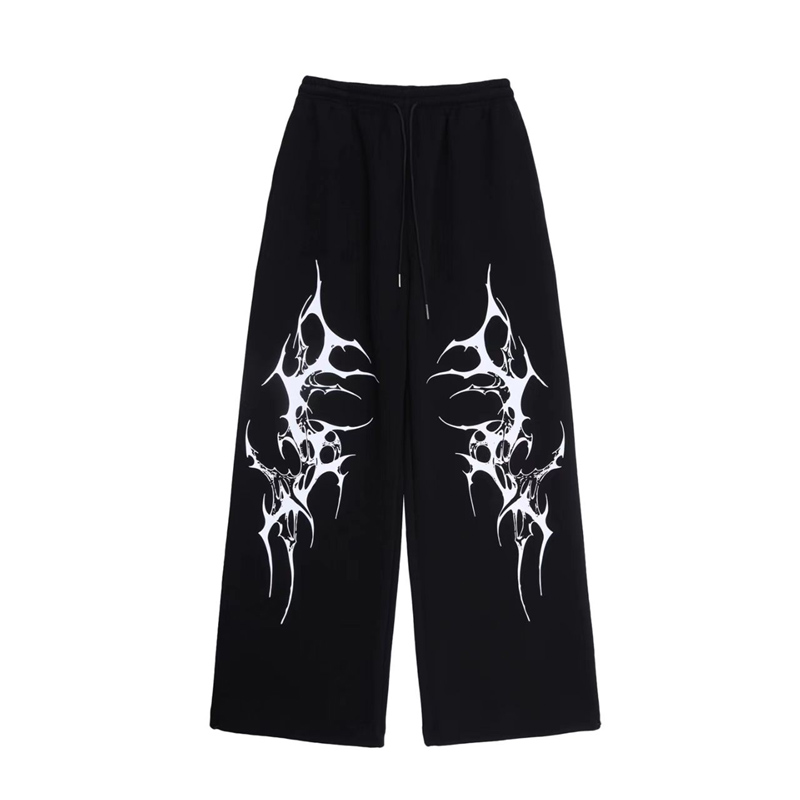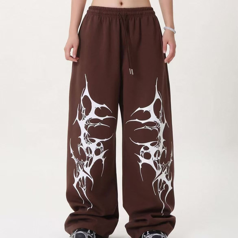 YF6514-(2色入内)美式辣妹时尚个性涂鸦松紧腰直筒阔腿潮街秋冬加厚卫衣裤