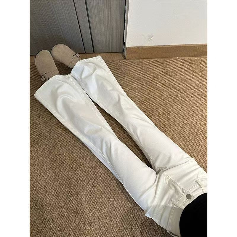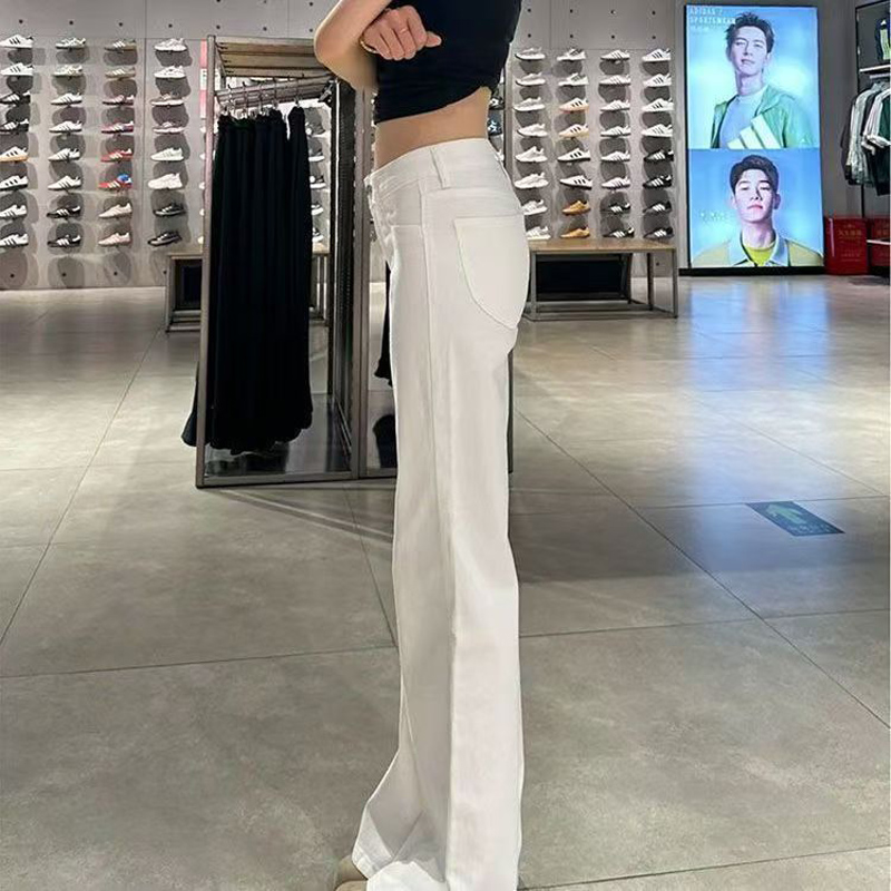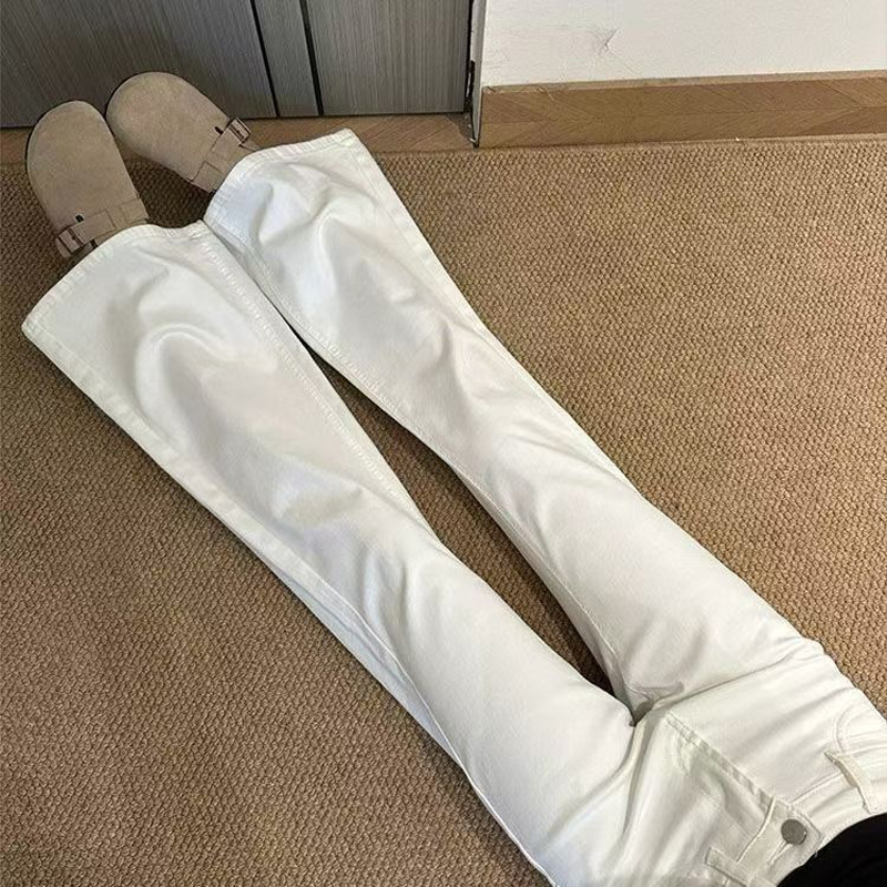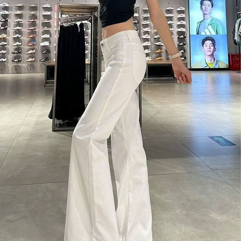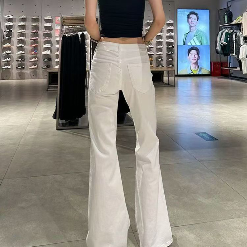 YF6531-图片色白色简洁清新气质系扣微喇叭坠地感慵懒风百搭大码牛仔裤