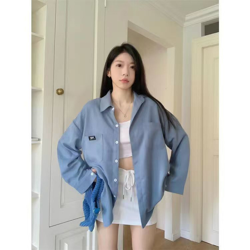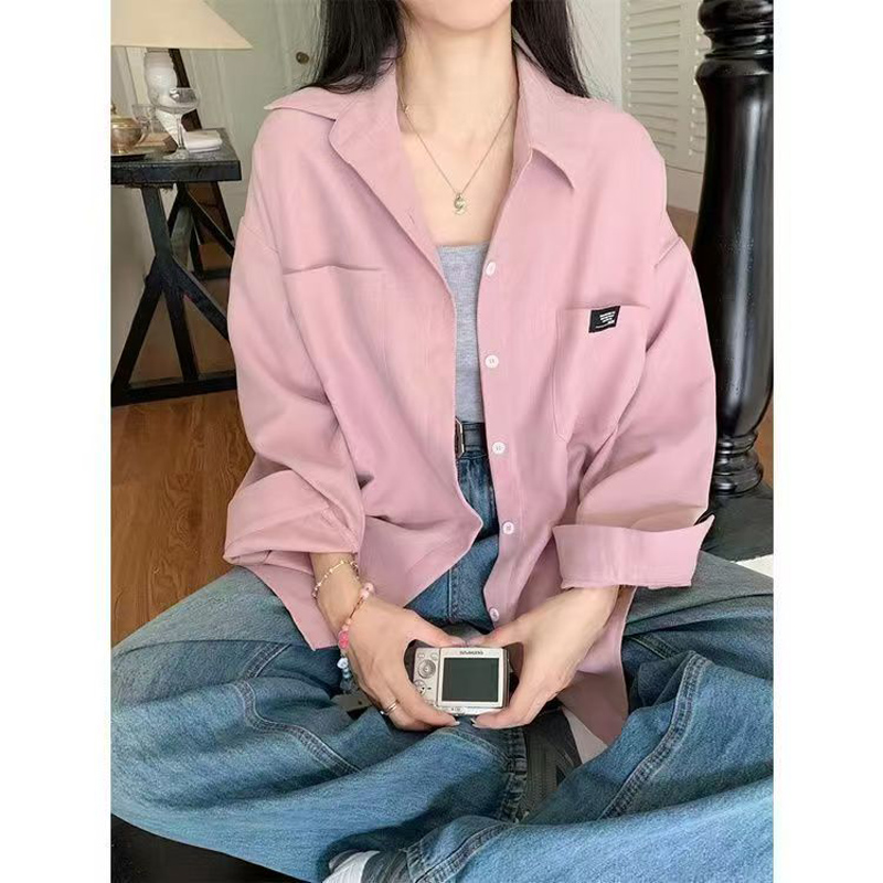 YF6650-(3色入内)港式秋冬灯芯绒口袋贴标设计慵懒风长袖翻领系扣胖MM衬衣