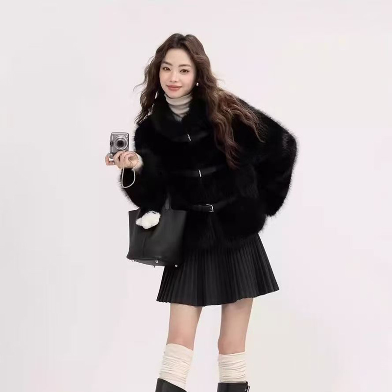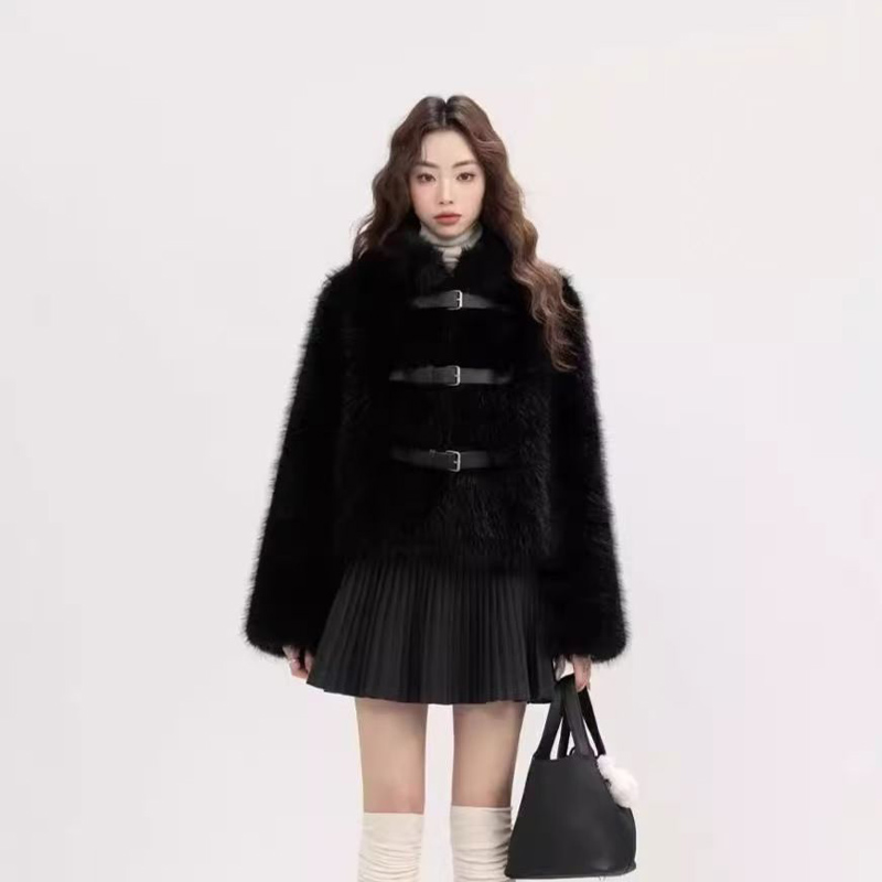 YF6658-图片色时尚冬装新款系扣设计长袖套头仿狐狸毛环保皮草大衣外套