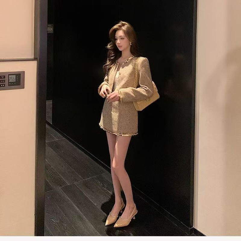 YF6701-图片色小香风粗毛呢高腰A字亮片金边设计防走光高级感半身