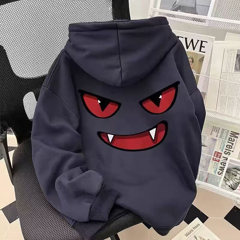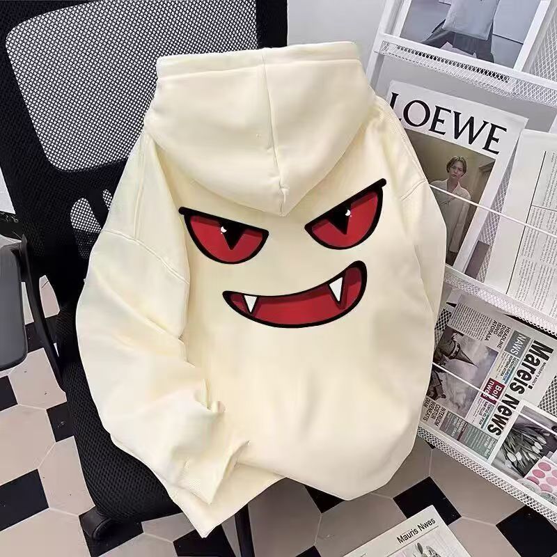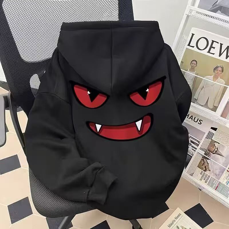 YF6704-(5色入内)慵懒风秋冬高街后背小恶魔印花长袖连帽宽松大码学院风卫衣