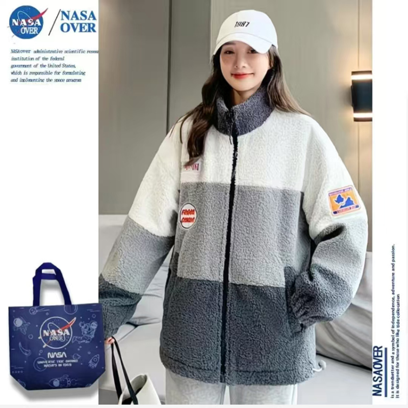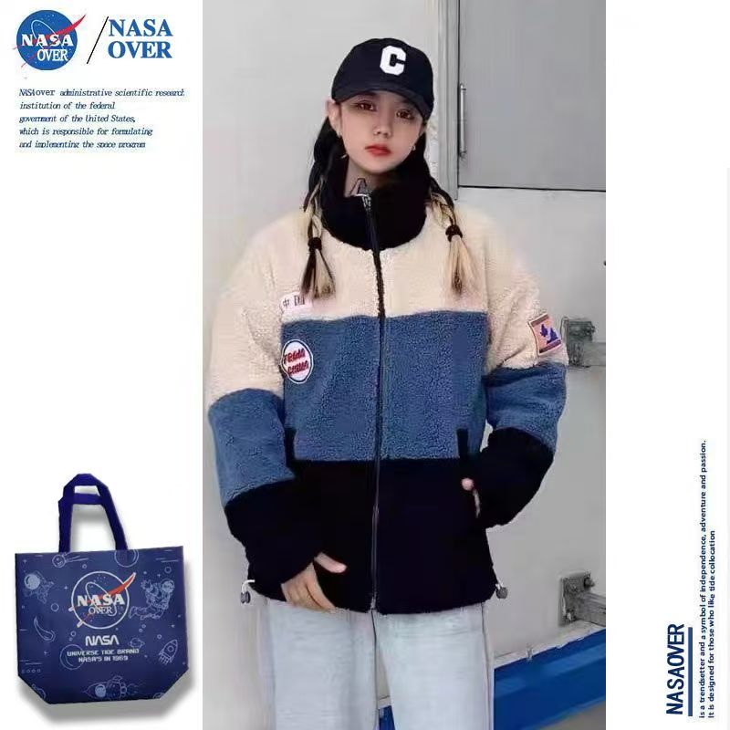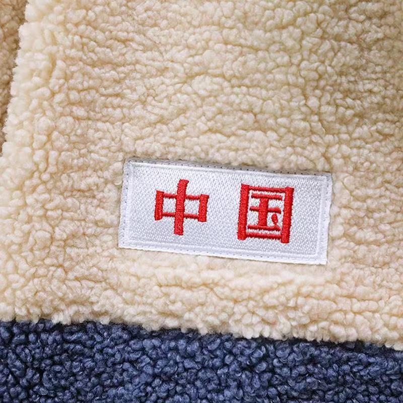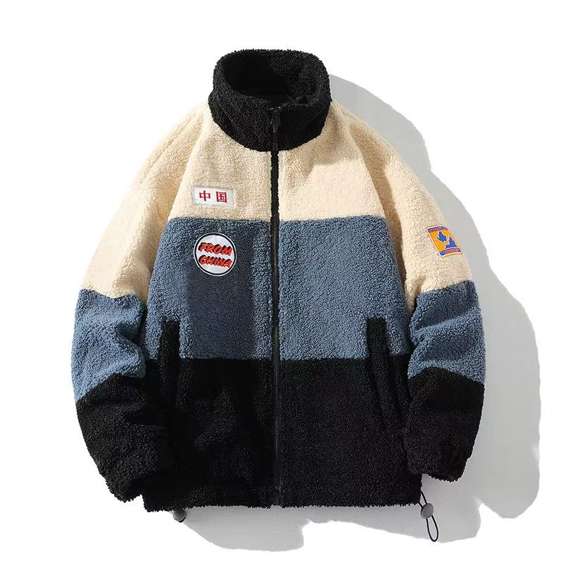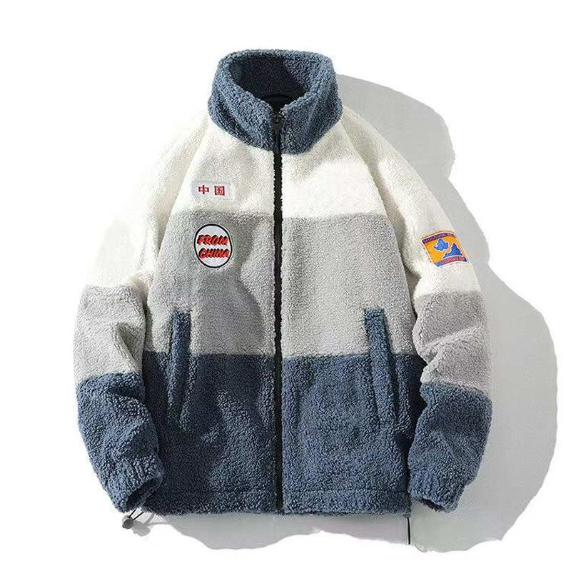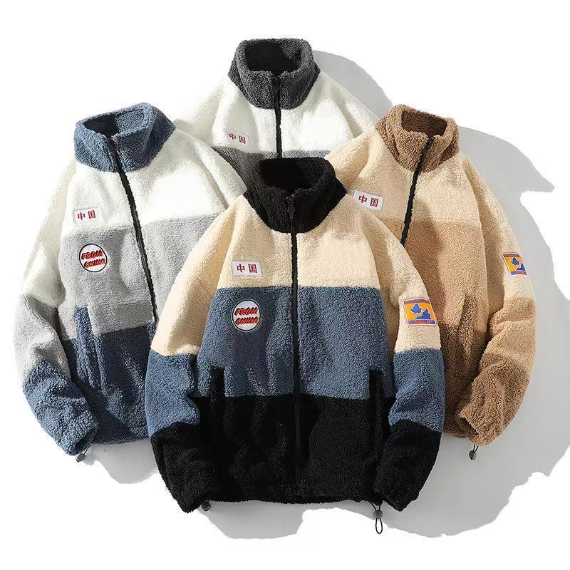 YF6722-(3色入内)冬天加绒加厚字母刺绣三色拼接设计感慵懒风潮牌外套