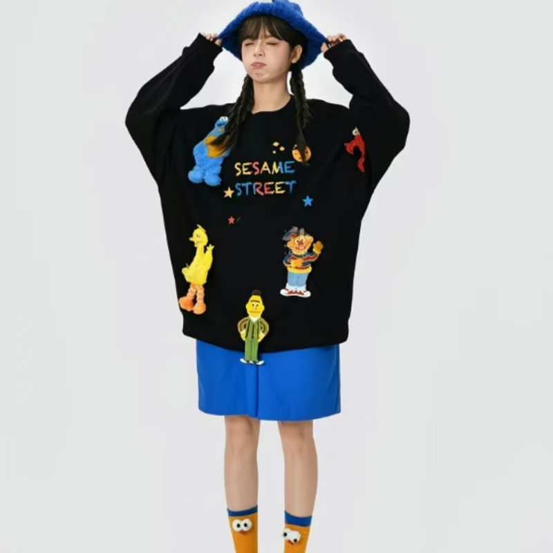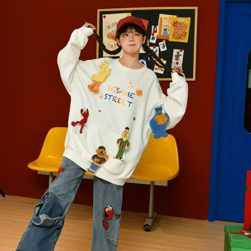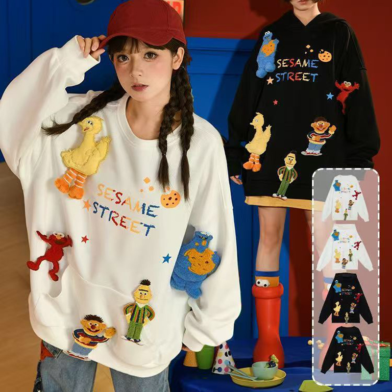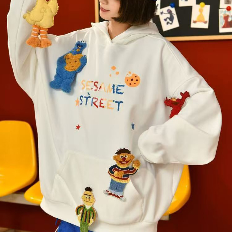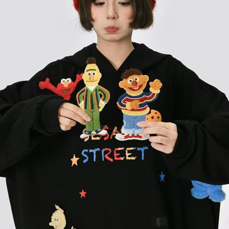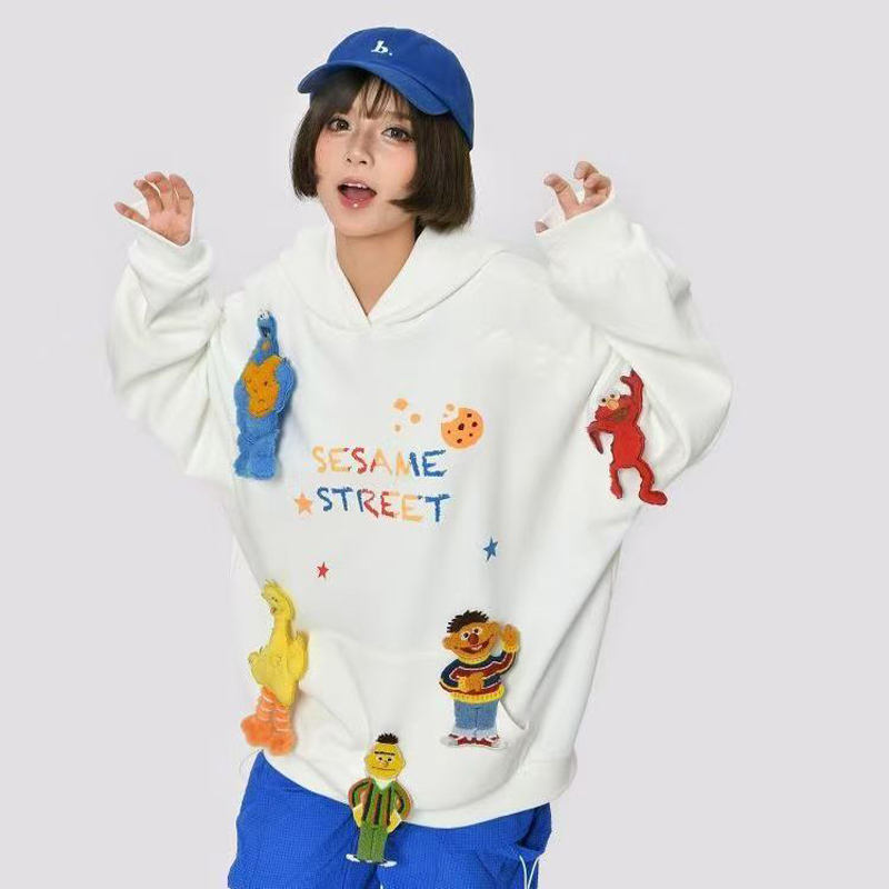 YF6829-(2色入内)韩版嘻哈风街头爆款字母印花可拆公仔多巴胺设计大码卫衣