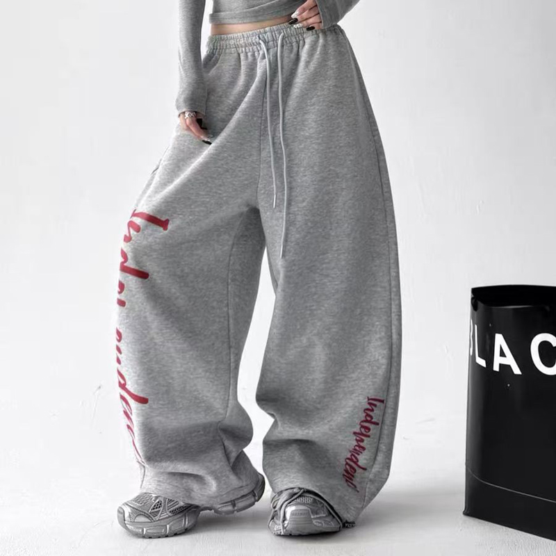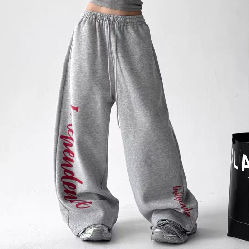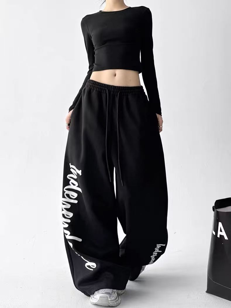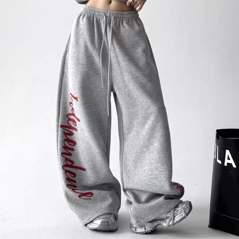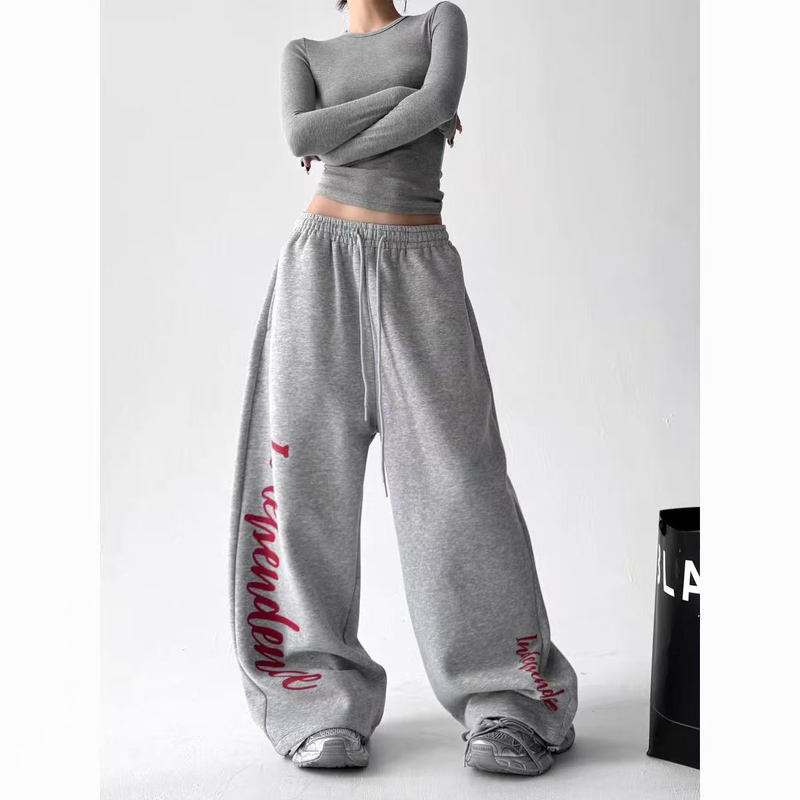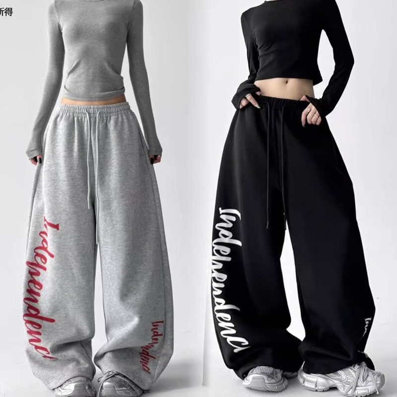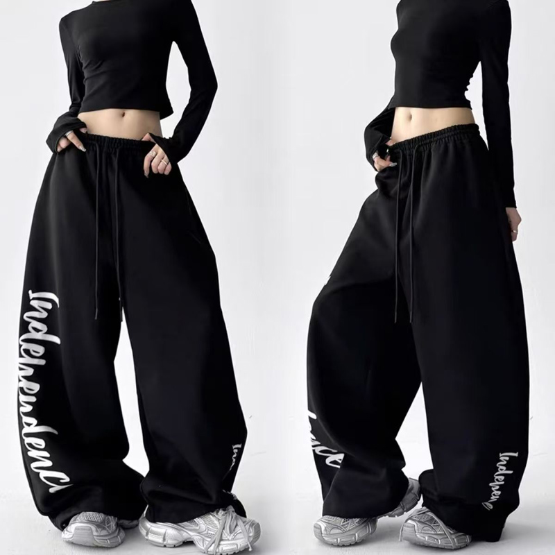 YF6833-(2色入内)慵懒风春装字母印花阔腿直筒坠地感松紧腰抽绳原宿风卫衣裤