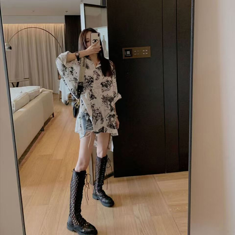 YF6901-图片色港式春季渐变设计慵懒风长袖POLO领胖MM显瘦大码牛仔衬衣