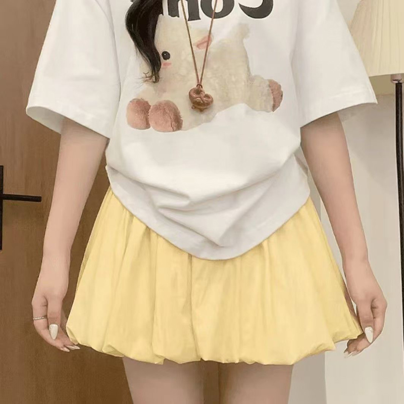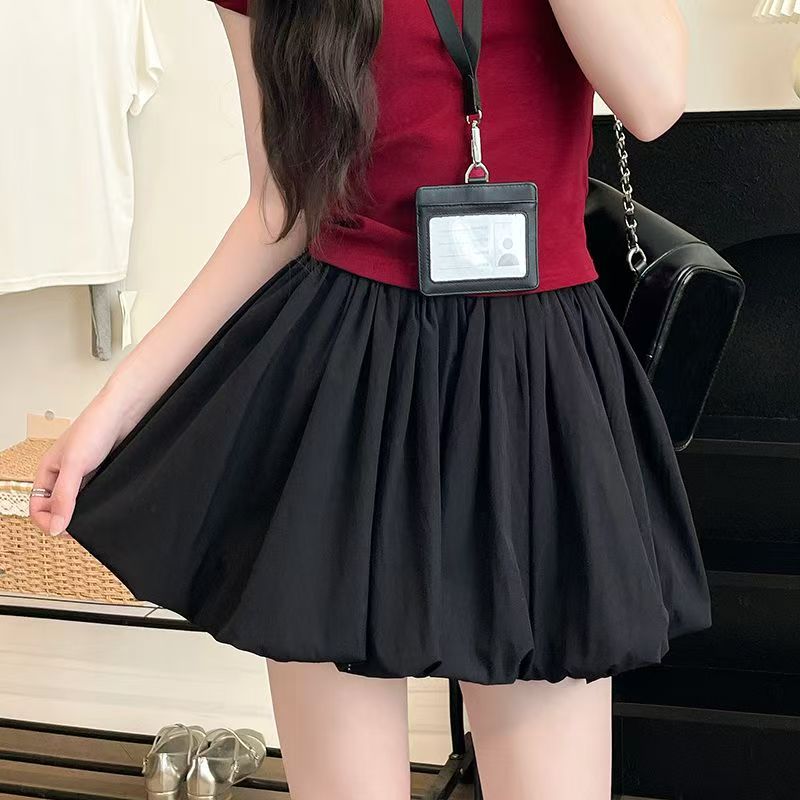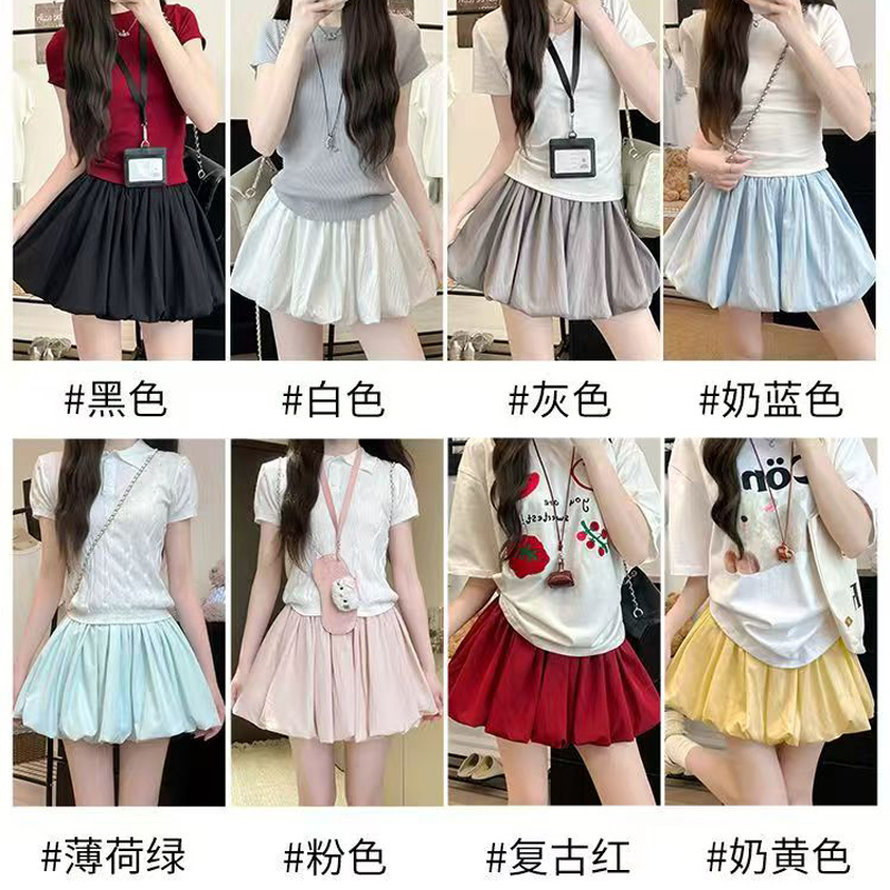 YF3935-(8色入内)原宿风日系松紧腰褶折花苞灯笼防走光内衬蓬蓬半身裙