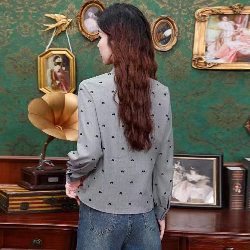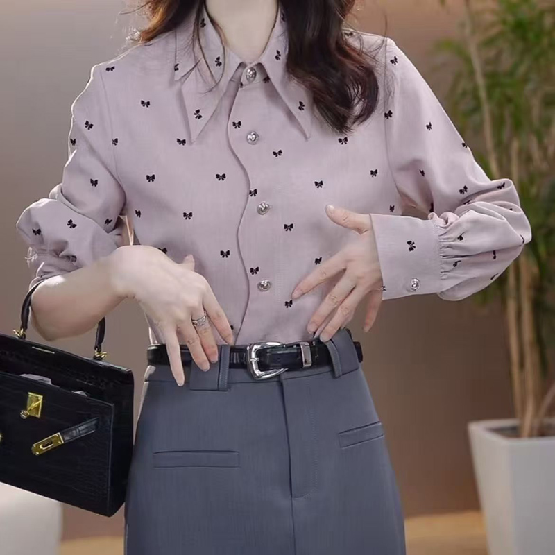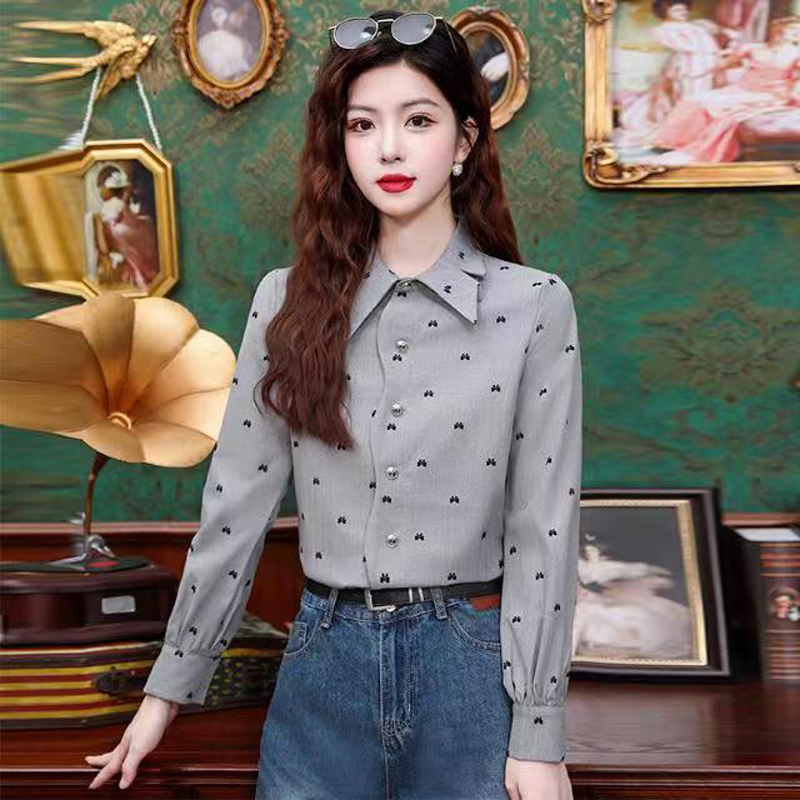 YF6938-(2色入内)韩版春秋水波纹暗花设计长袖翻领宽松大码高级感衬衣
