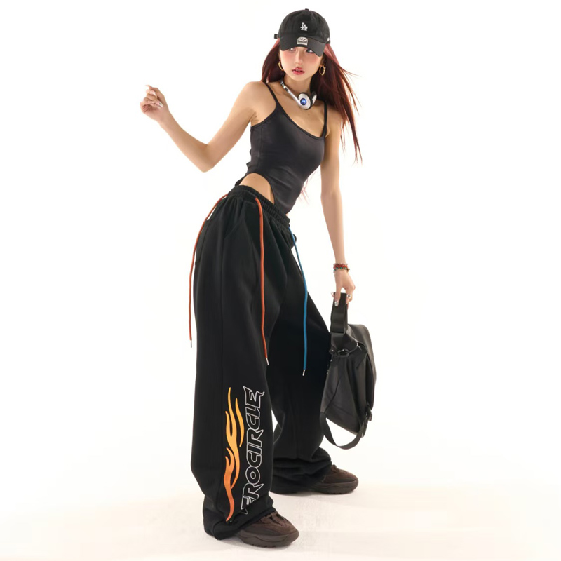 YF6958-图片色原创新款松紧腰撞色绑绳字母印花动感设计阔腿运动卫衣裤