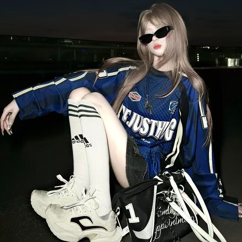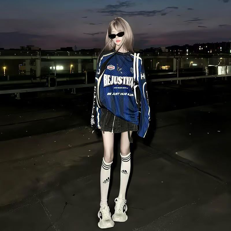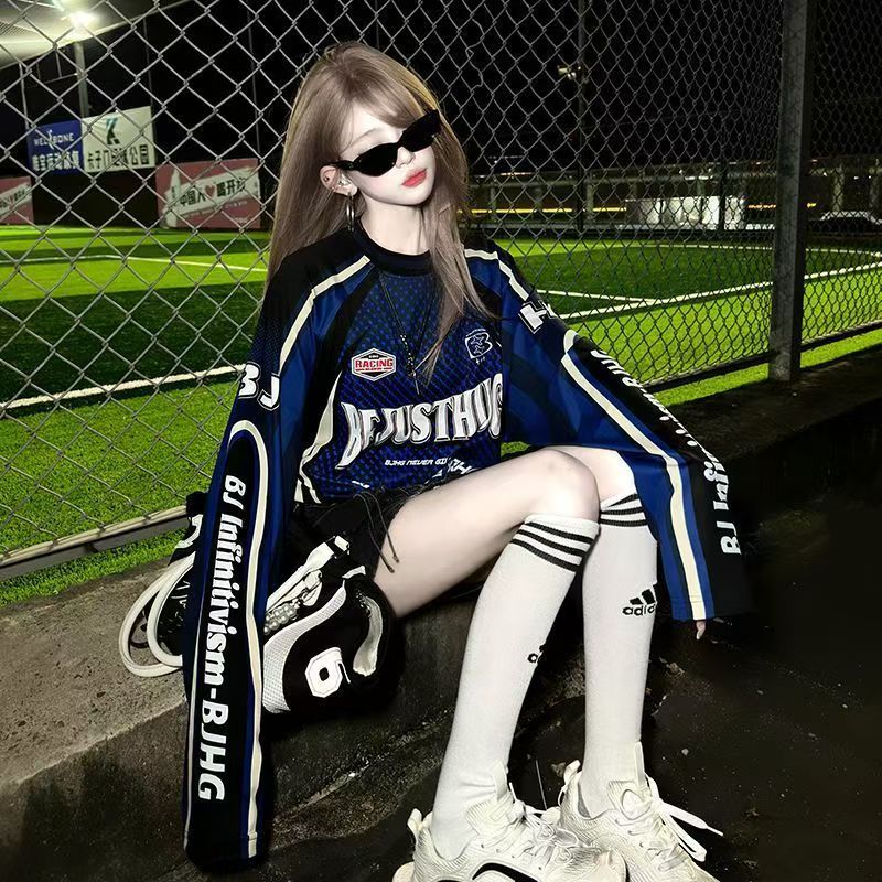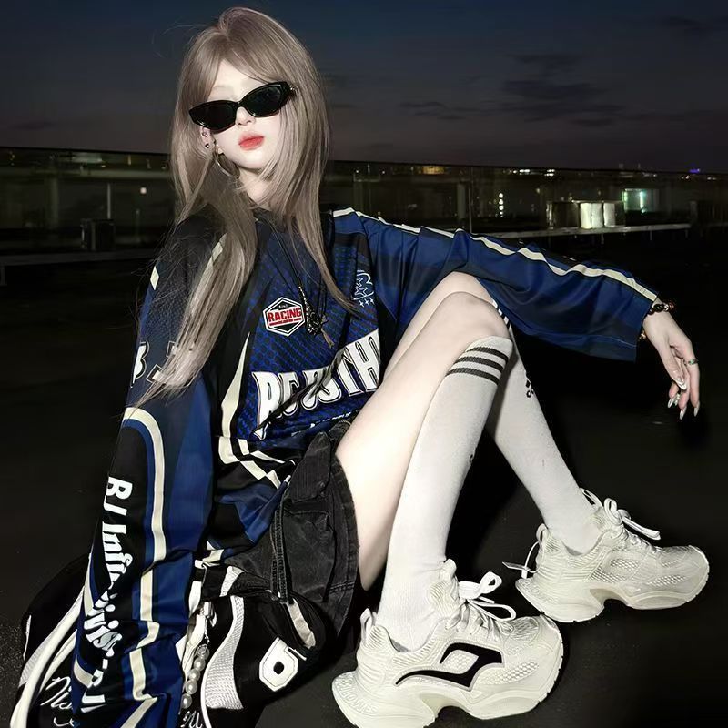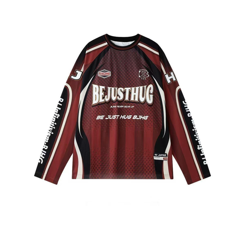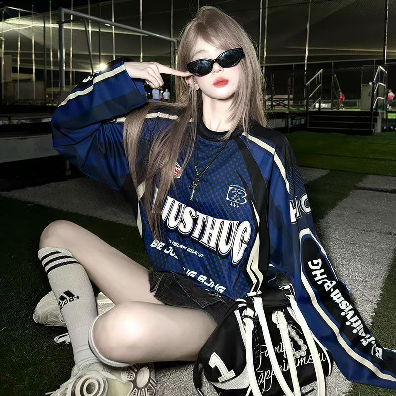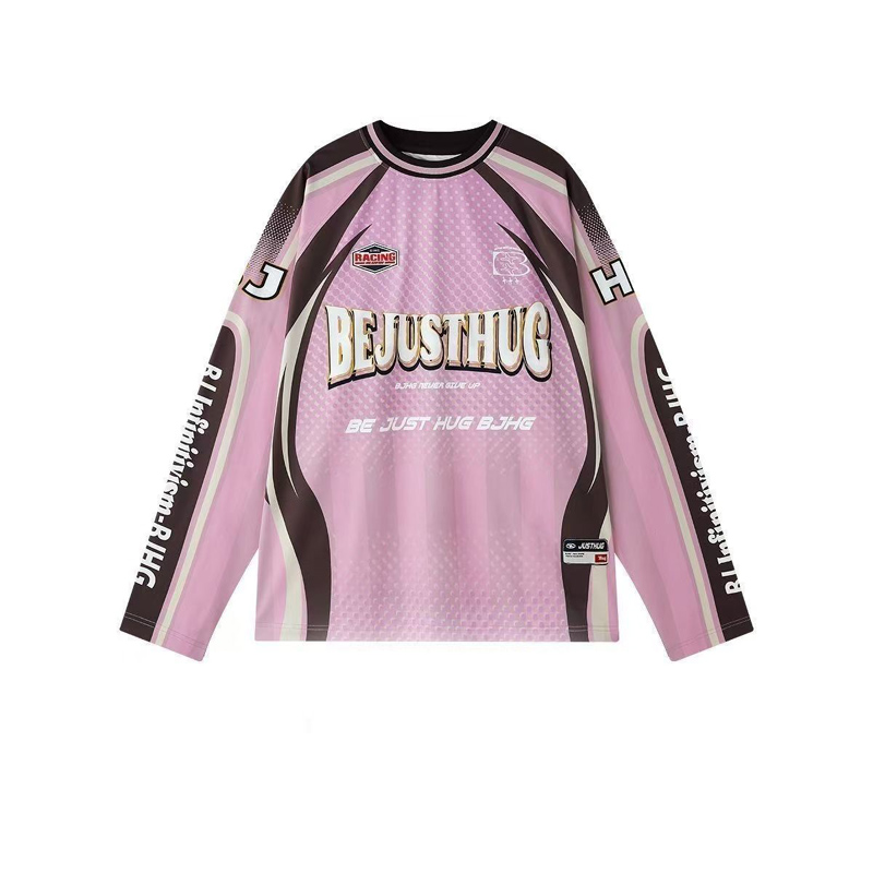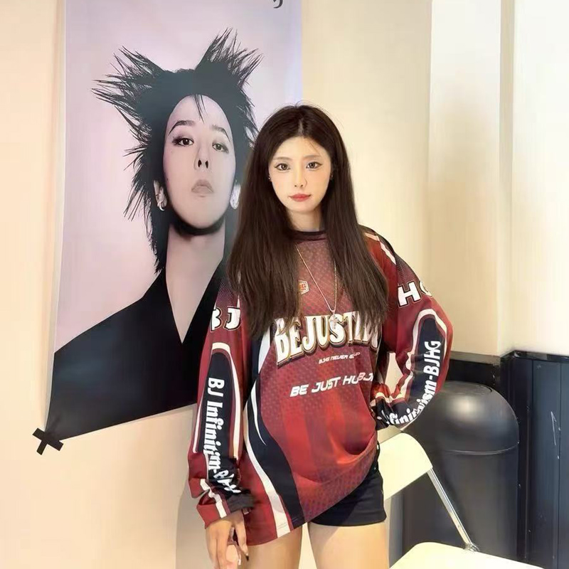 YF6969-(3色入内)美式时尚运动感字母印花蝙蝠袖撞色拼接宽松透气机车装上衣