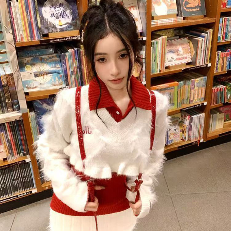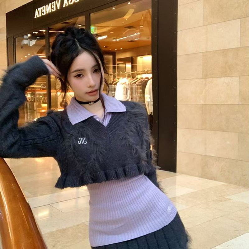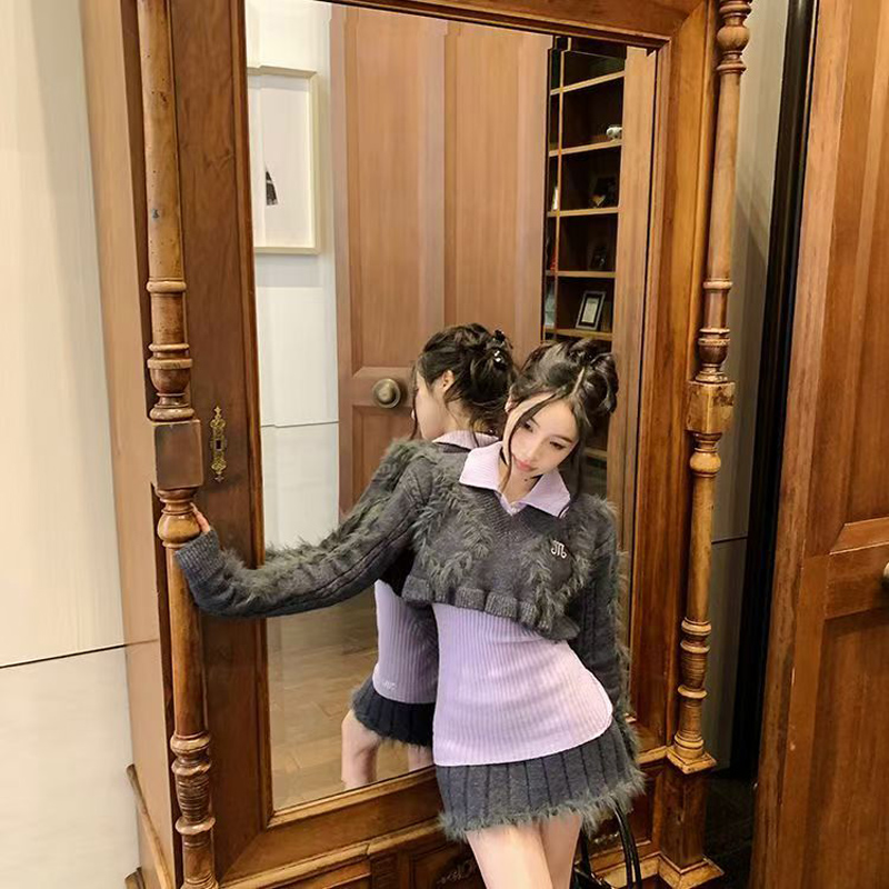 YF6970-(2色入内)性感时尚辣妹冬装松紧腰毛边坑条纹A字针织加厚防走光短